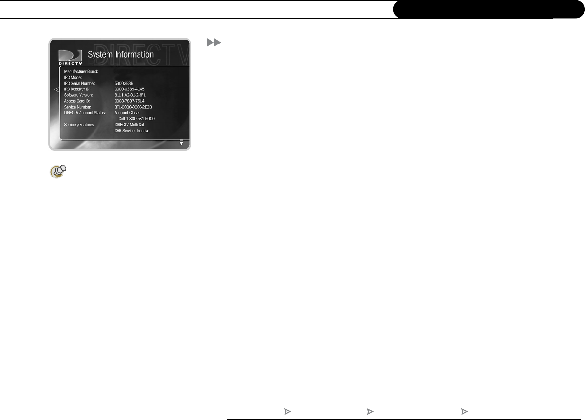 Information screen. (Press the DIRECTV button, then select “Messages & Setup” then