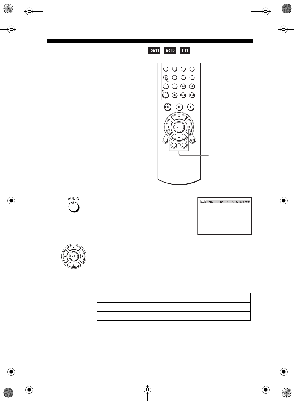 “Dolby Digital” to “D-PCM”).