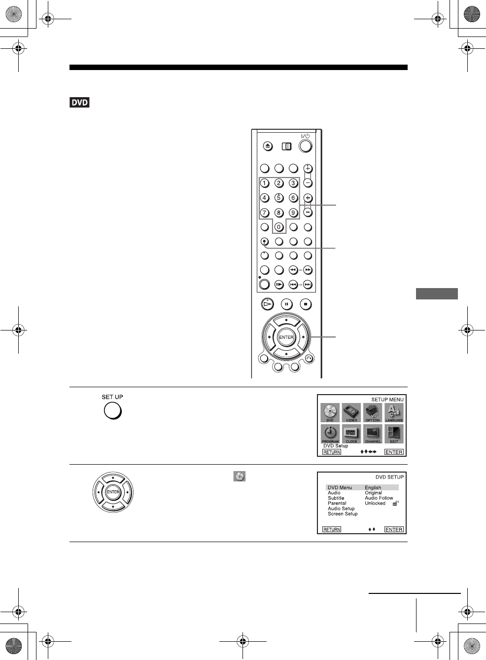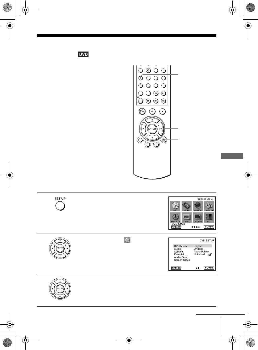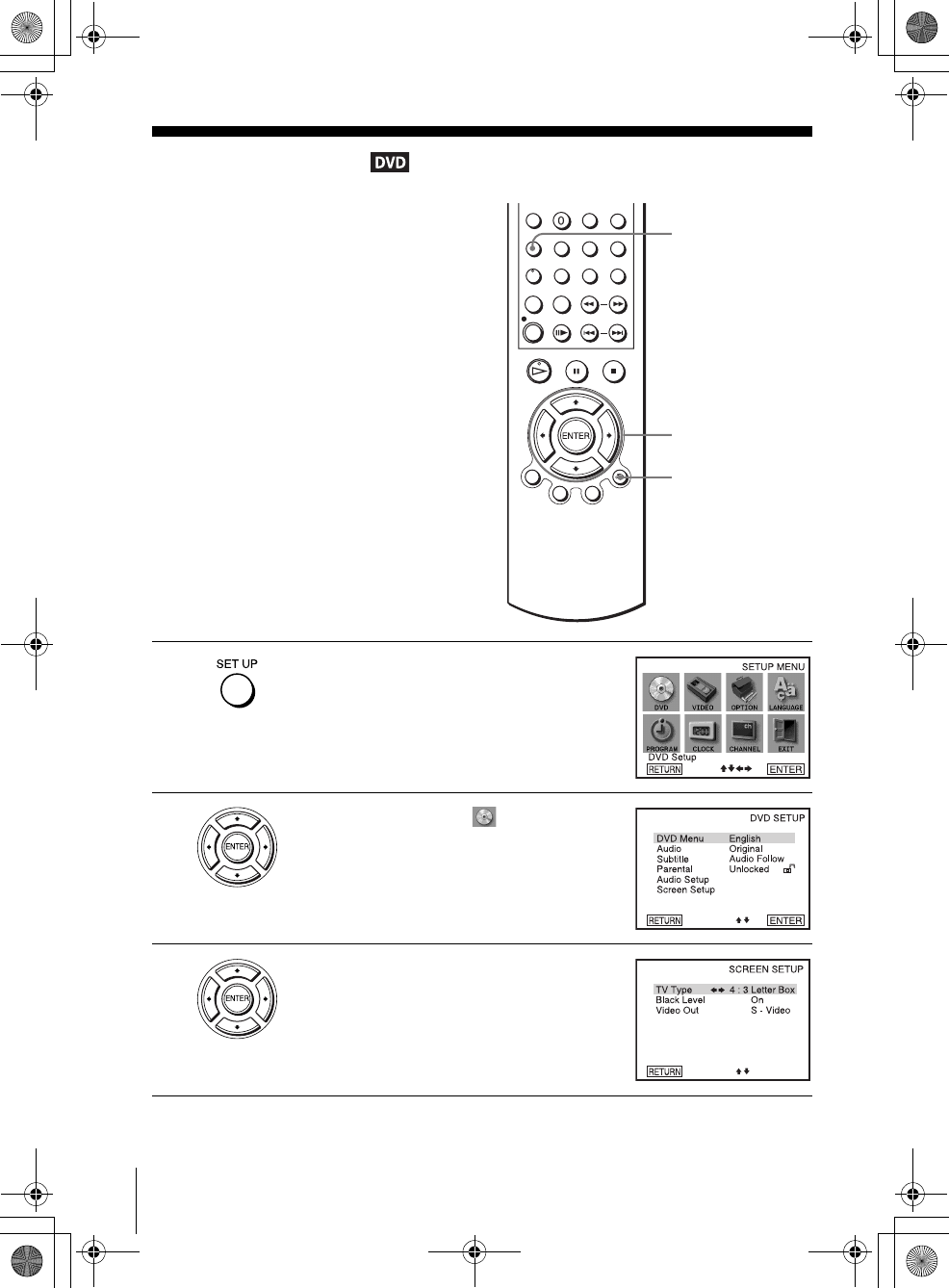 The “DVD SETUP” menu appears.