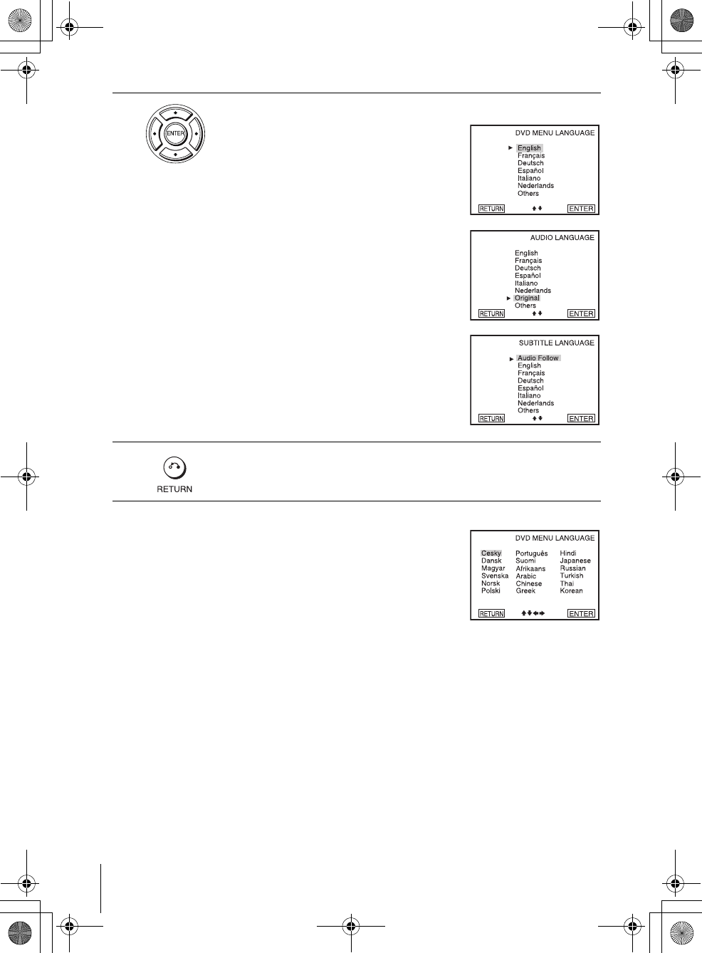 Setting the display or sound track language