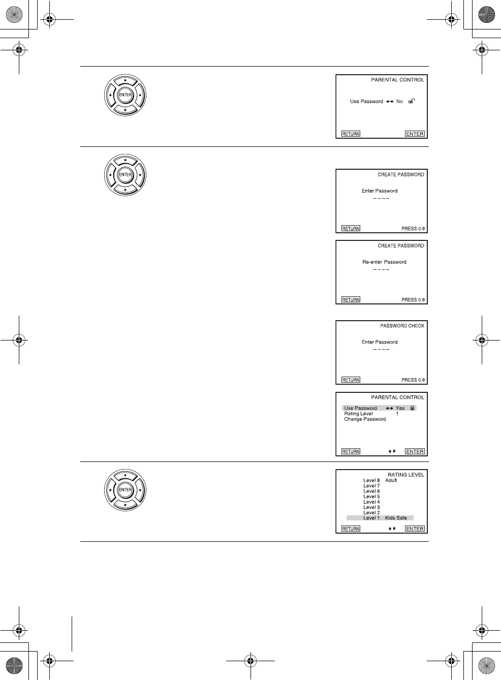 5Press B/b to select an item, then press O RETURN to confirm the setting.