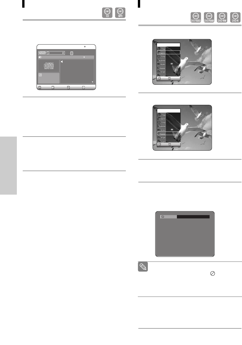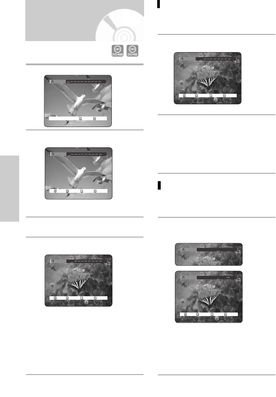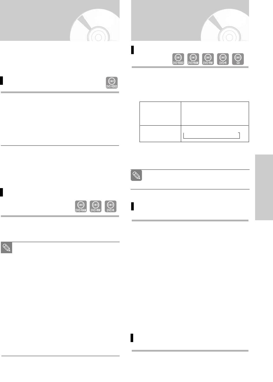 •DVD-RAM or DVD-RW (VR Mode) discs have
