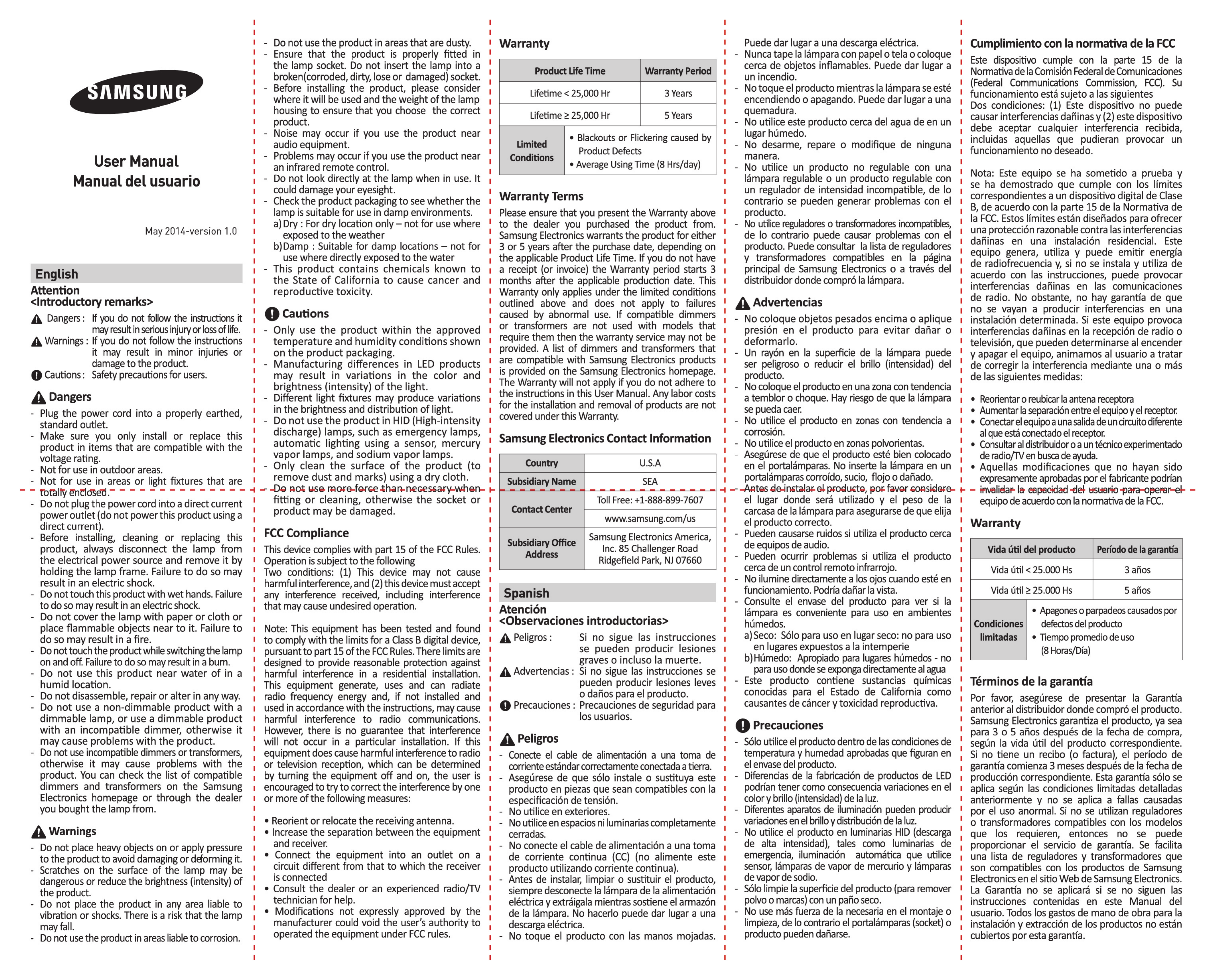 Samsung Electronics Co GB8XH9009AF LED Bulb User Manual USA