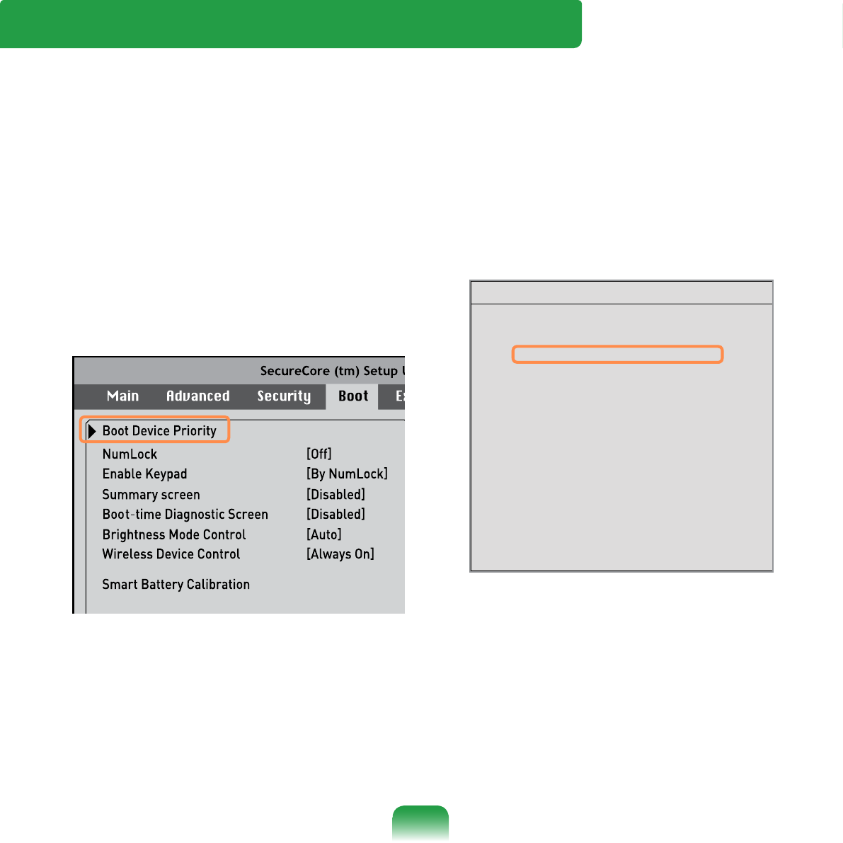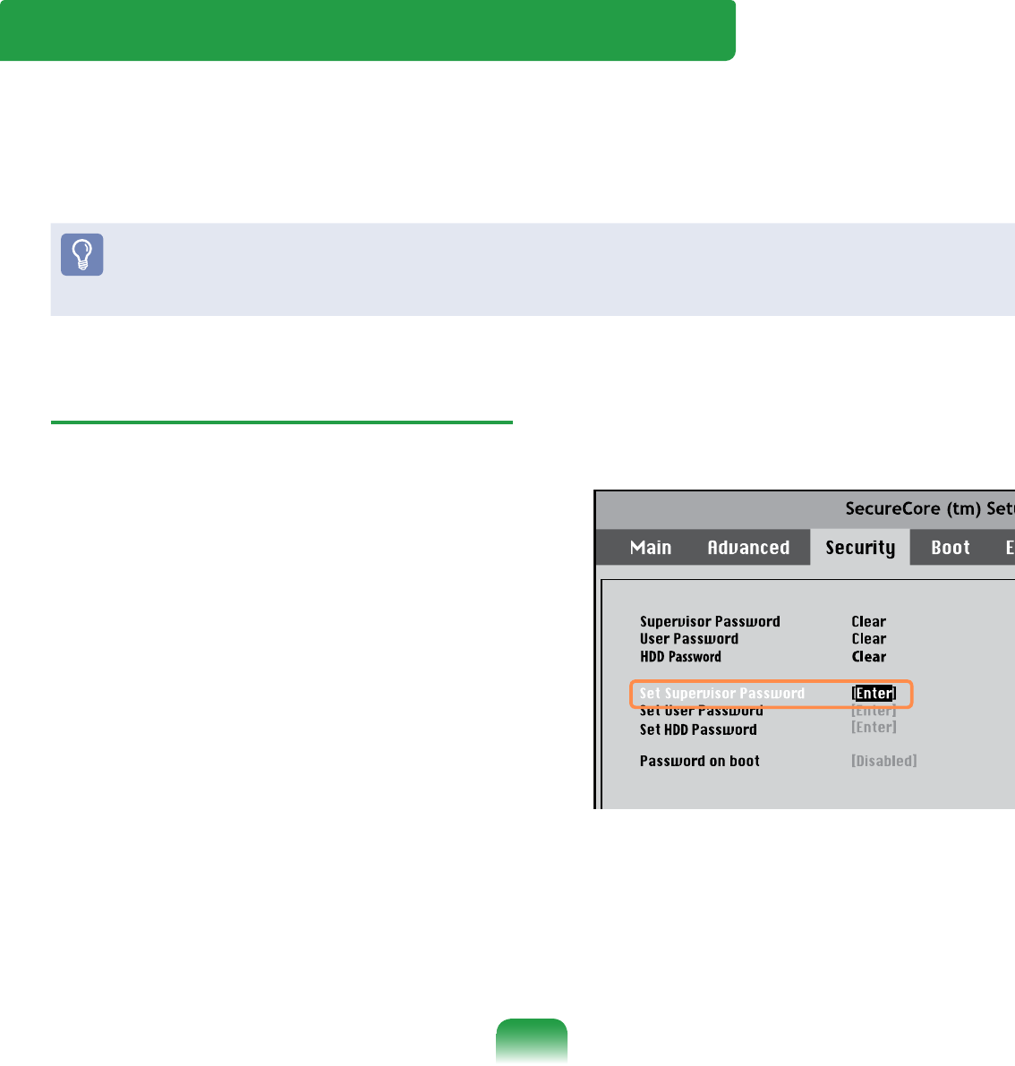Use the BIOS setup to dene a boot password, change the booting priority, or add a