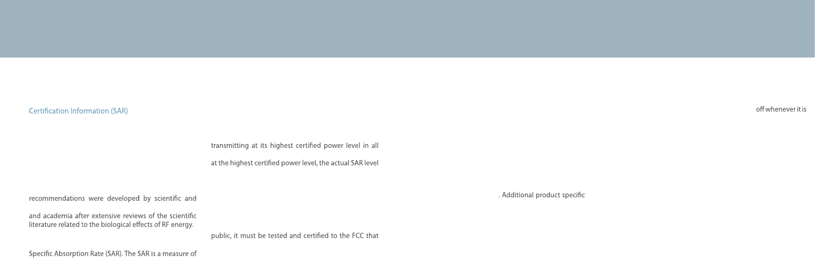 Specic Absorption Rate (SAR) certication information