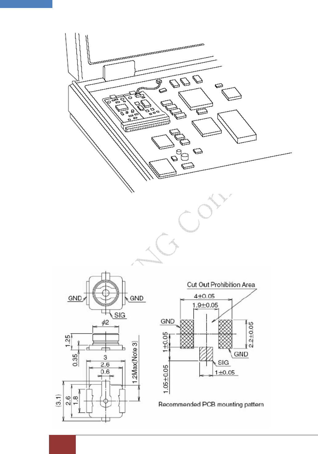 The SMD connectors used for the antenna connections on the GT-Y3400 module are delivered