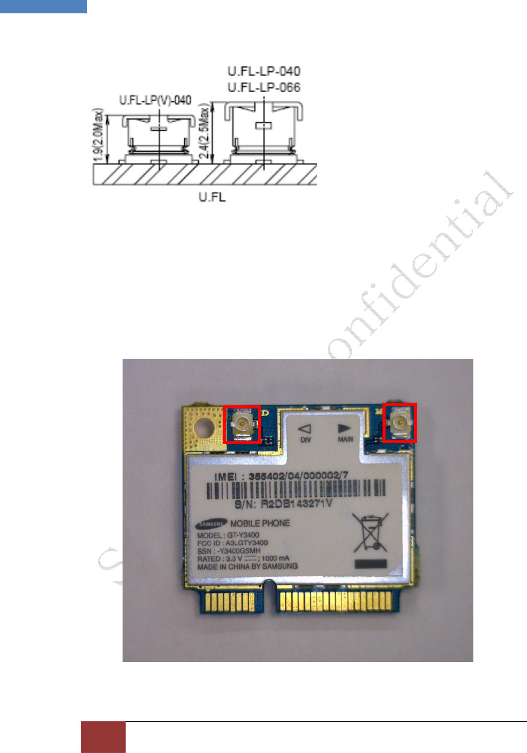 Figure 8. placement of the antenna connectors for the GT-Y3400