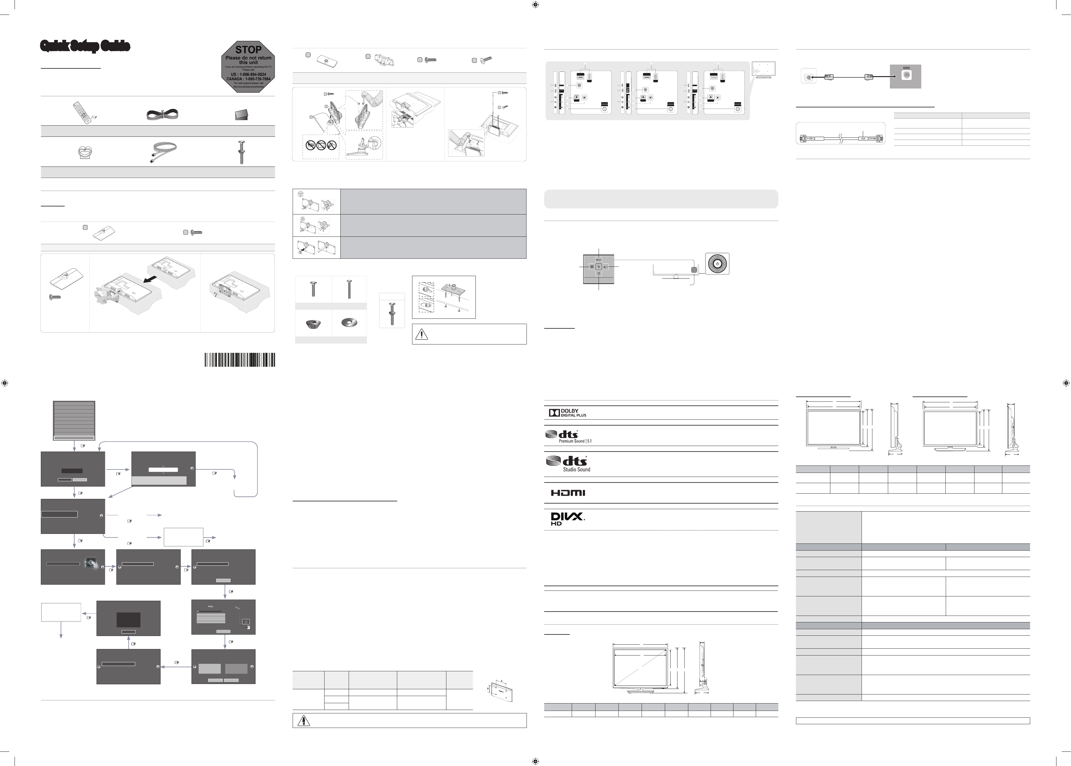 specications. Screws that are too long may cause damage to the inside of the TV set.