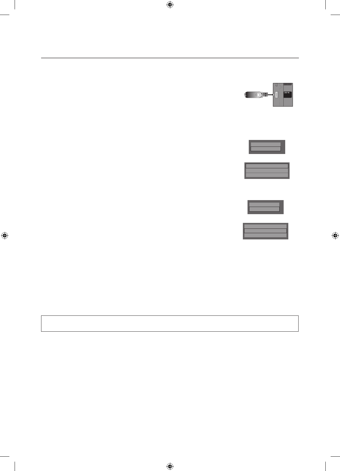 – The No USB device message appears if no USB device is connected.