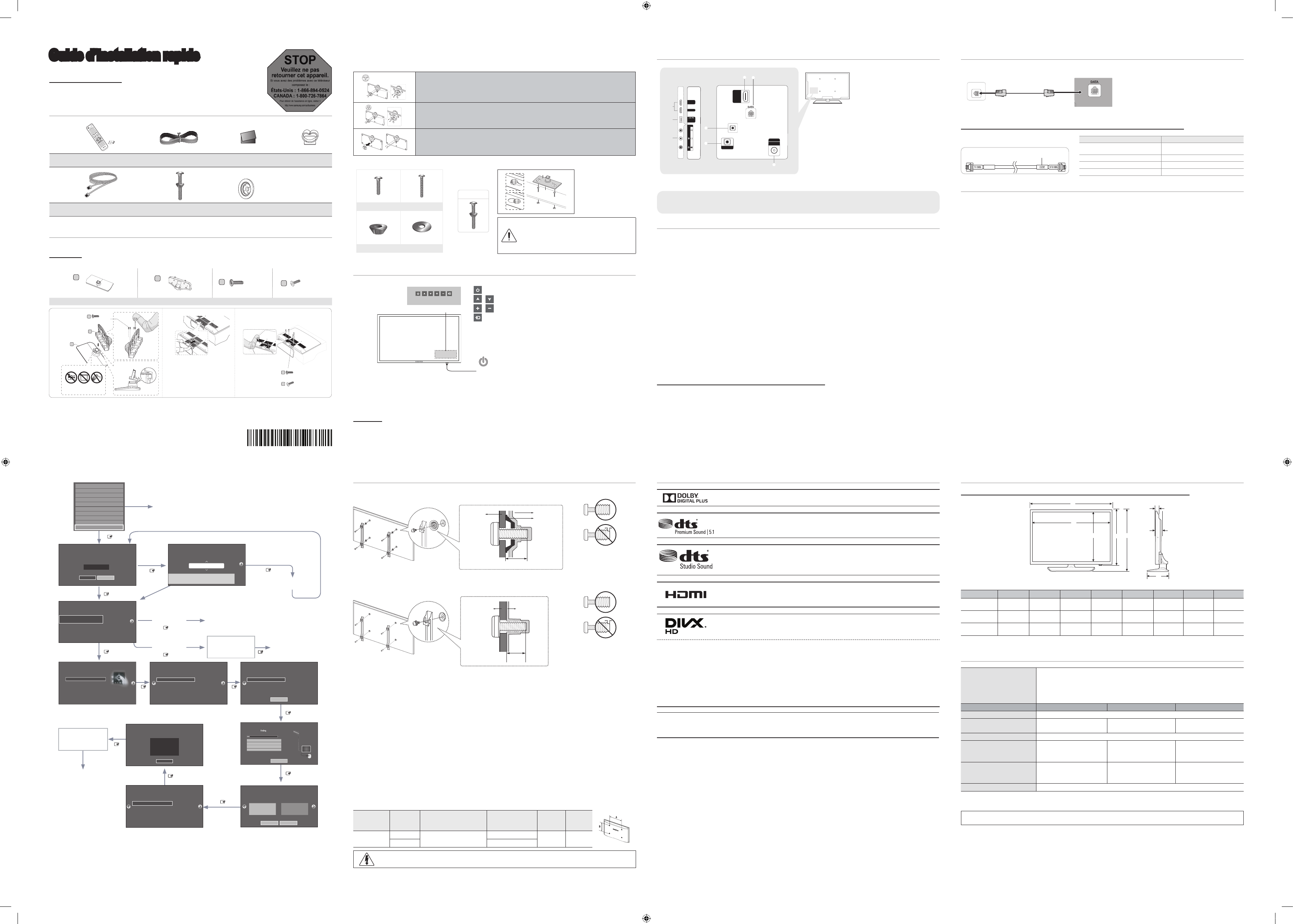 ➣Les ensembles de xation murale de Samsung sont fournis avec un guide d’installation détaillé. Toutes les pièces