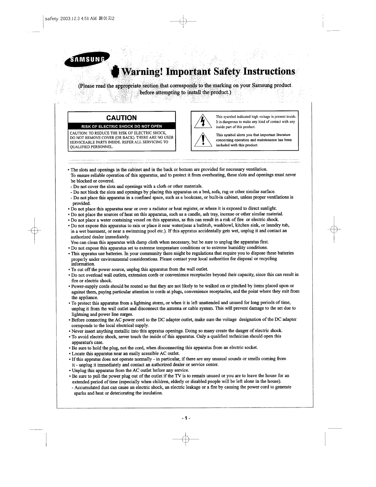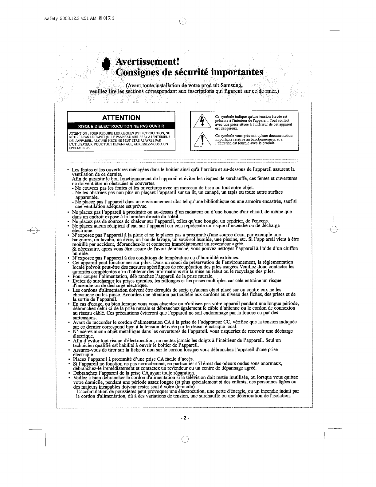 Samsung Electronics Co Ltd DLP Projection TV Users Manual 2
