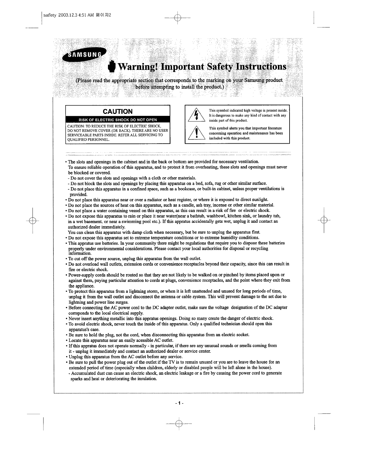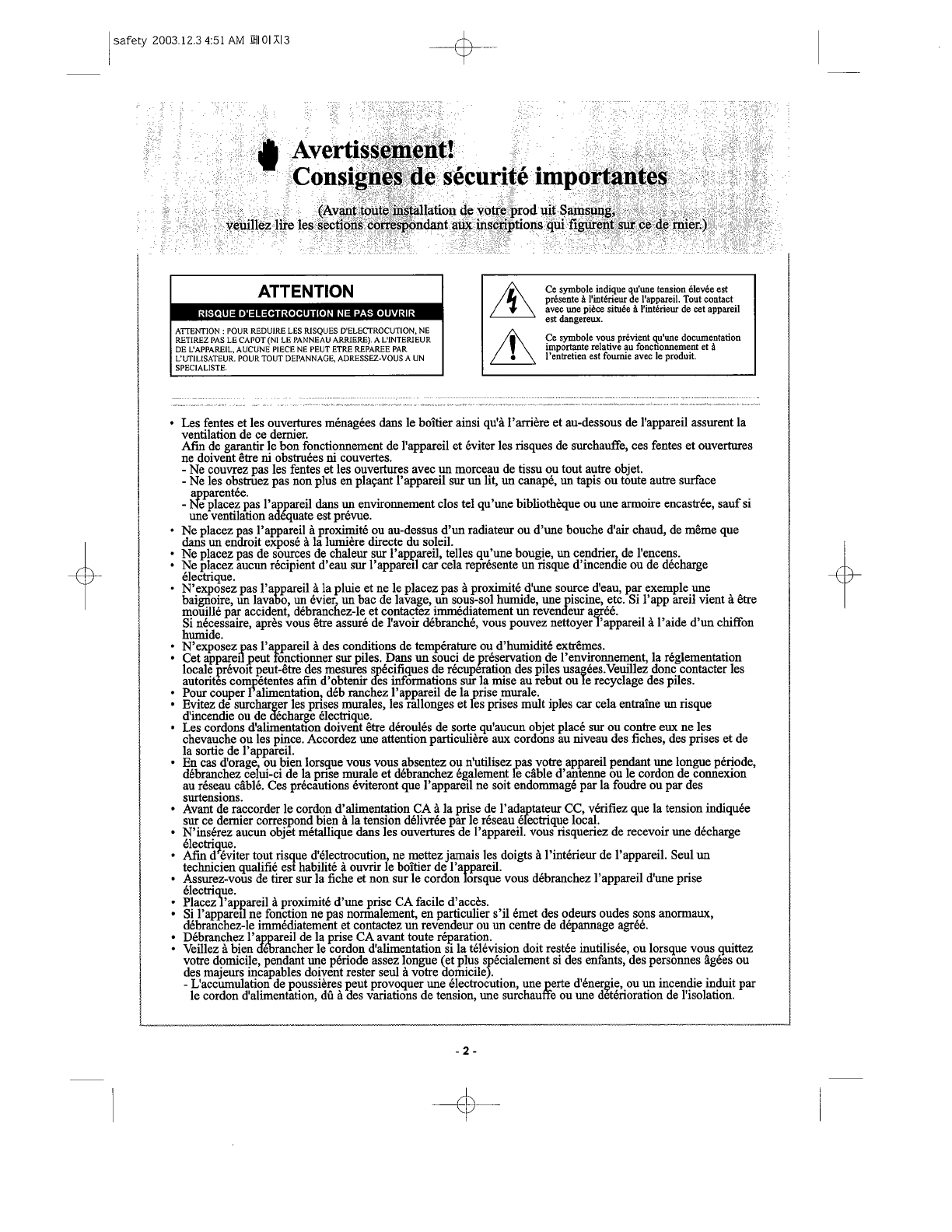 Samsung Electronics Co Ltd DLP Projection TV Users Manual 2