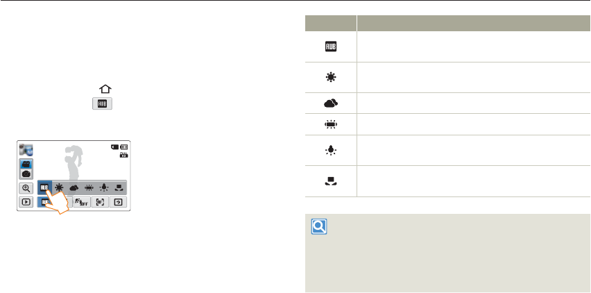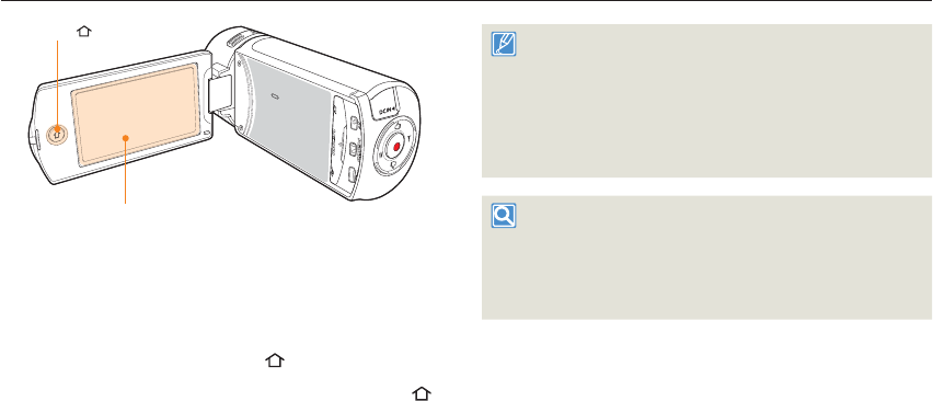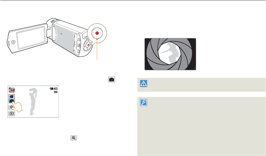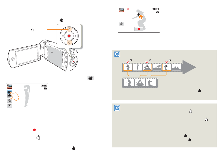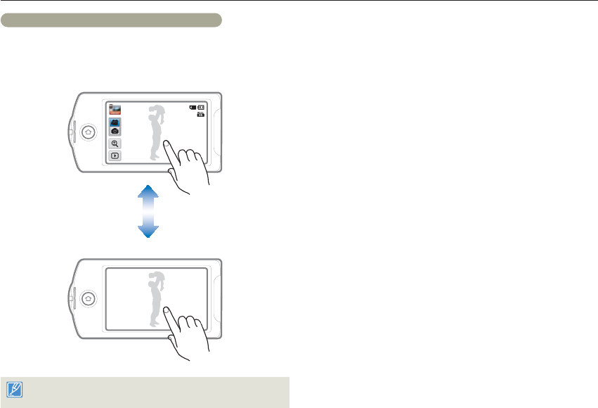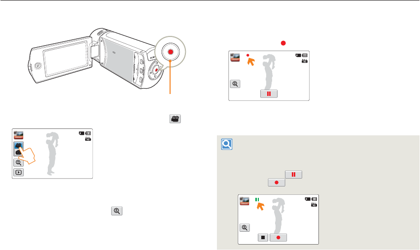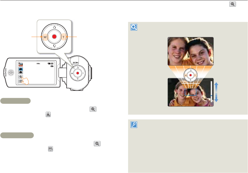 This camcorder allows you to record using optical X20 zoom and digital X40 zoom by pressing the [T/W] button or touching the Zoom ( ) tab