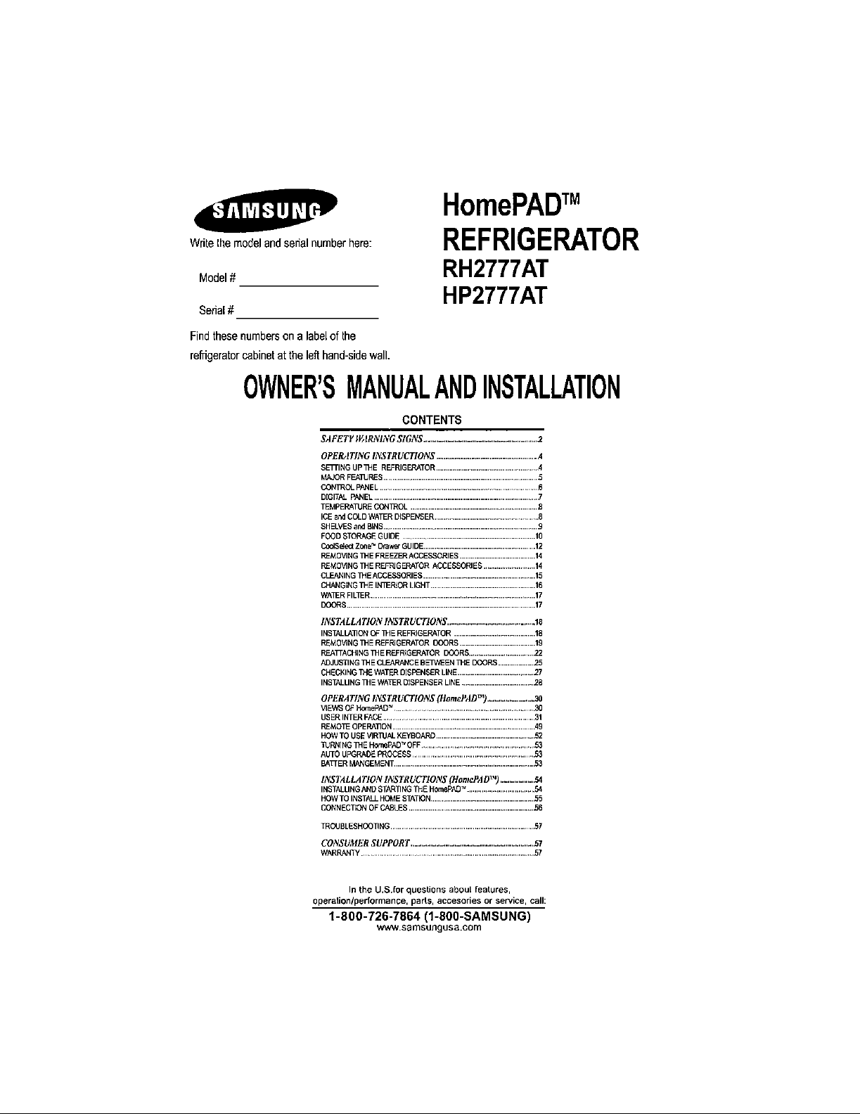 Samsung Electronics Co HP2777AT Wireless Internet Appliance - Refrigerator (DSS) User Manual