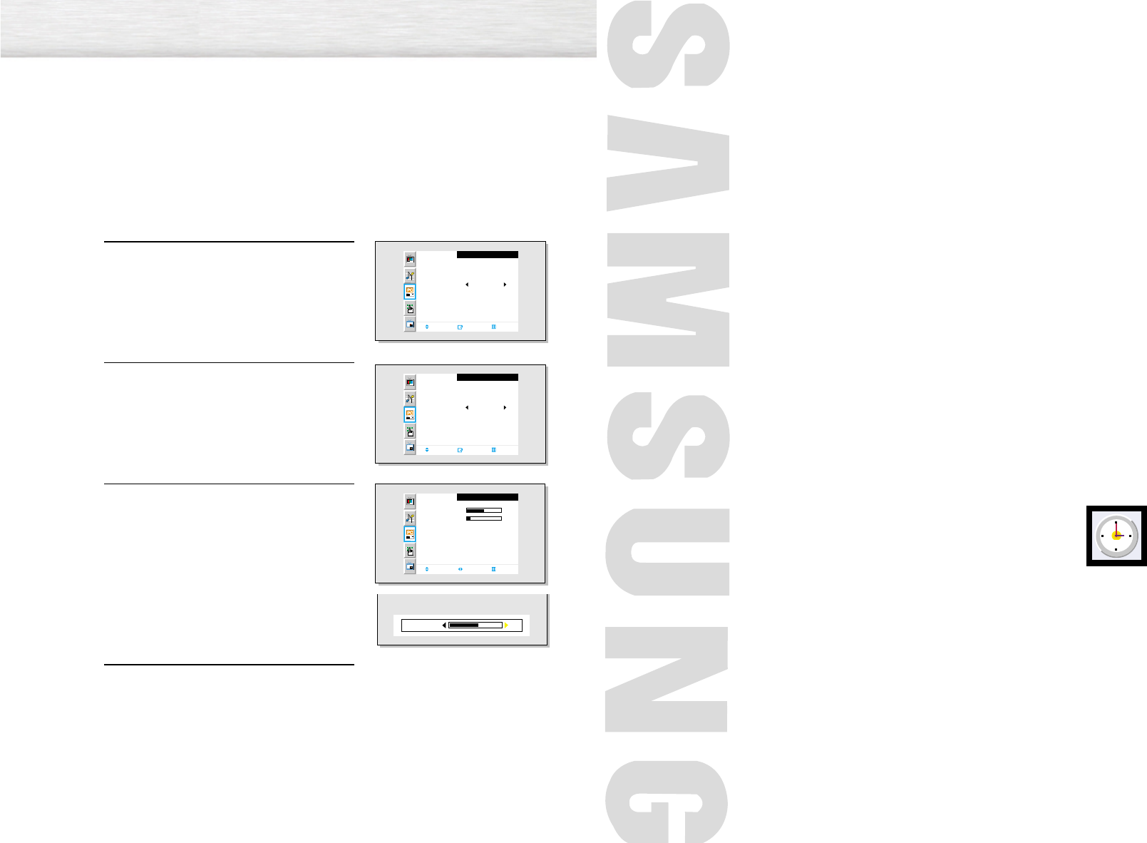 • In the PC/DVI mode, you can’t adjust the Sharpness, Color and Tint.
