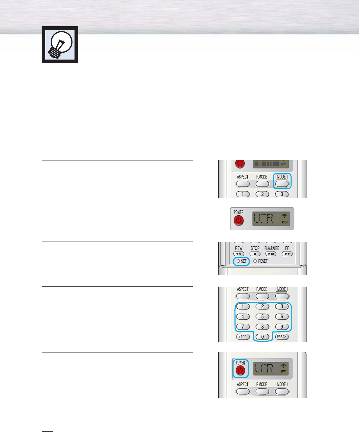 •You do not need to program the remote for Samsung STBs as the codes are pre-programmed.