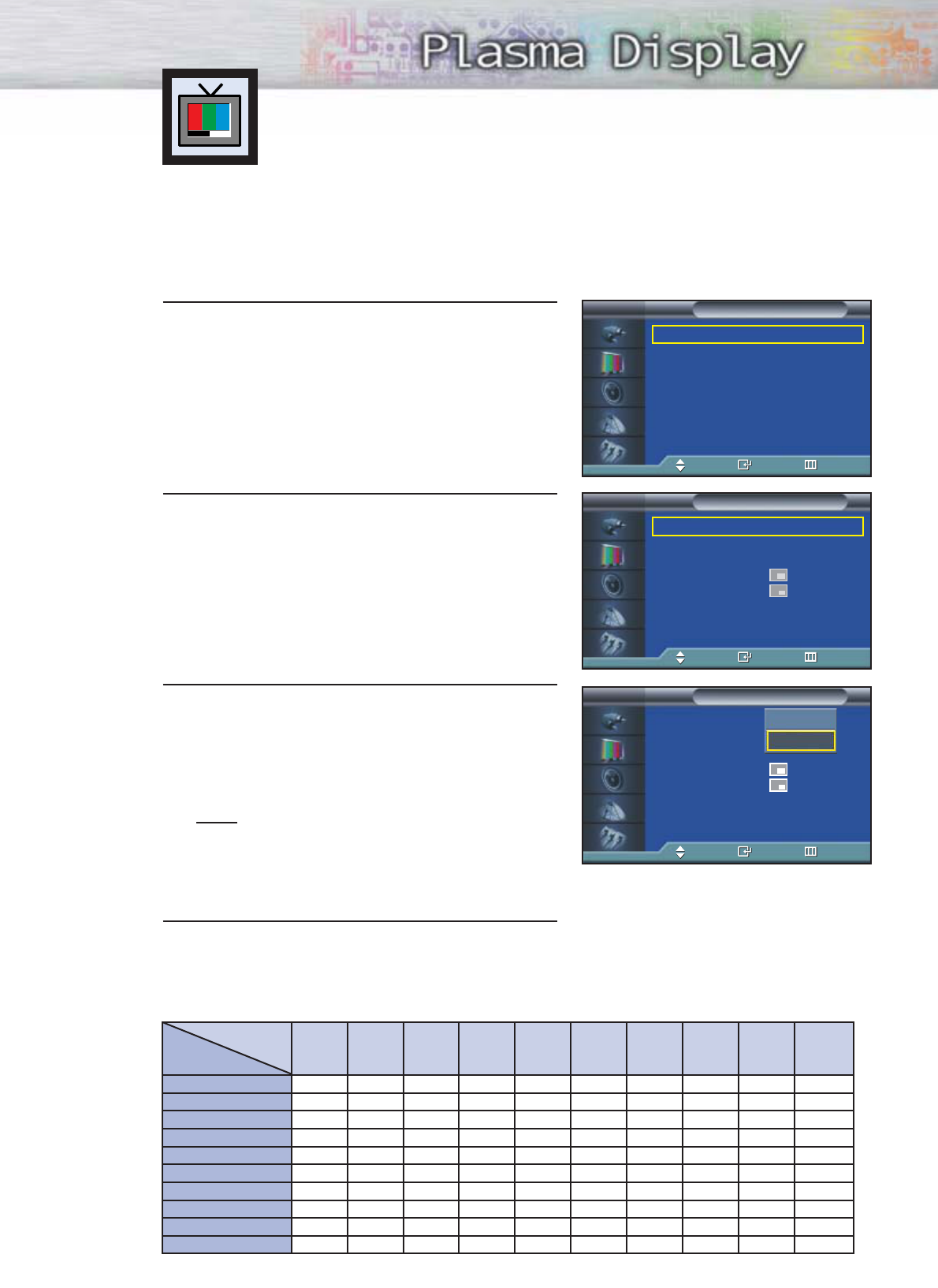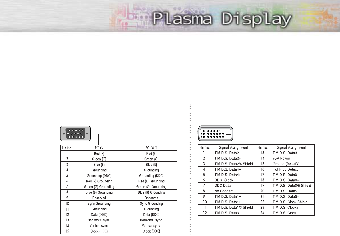 AV1, AV2, AV3, S-Video1, S-Video2, Component1, Component2, PC or DVI on the PDP’s rear