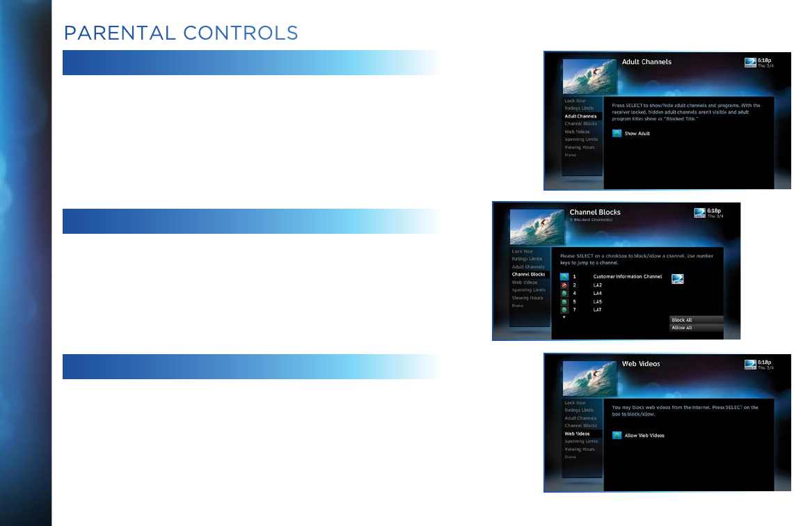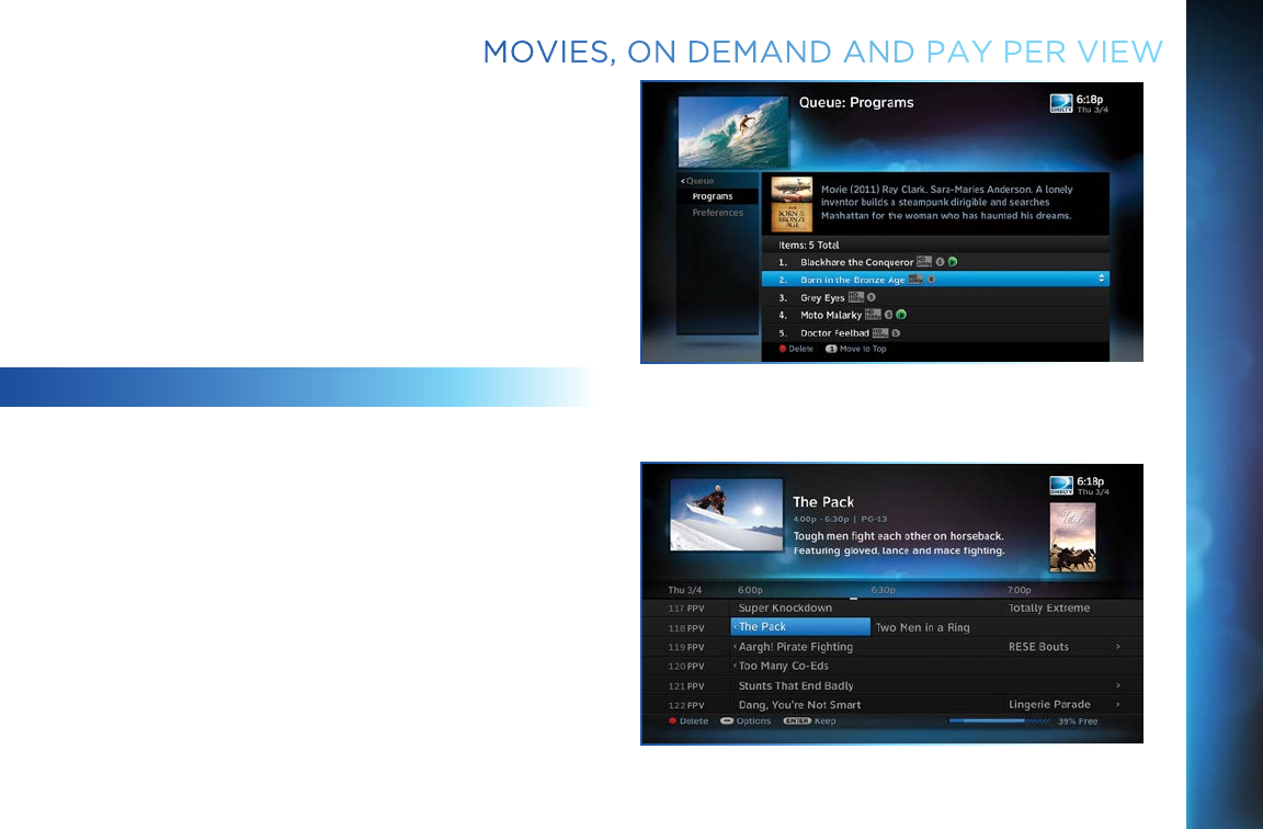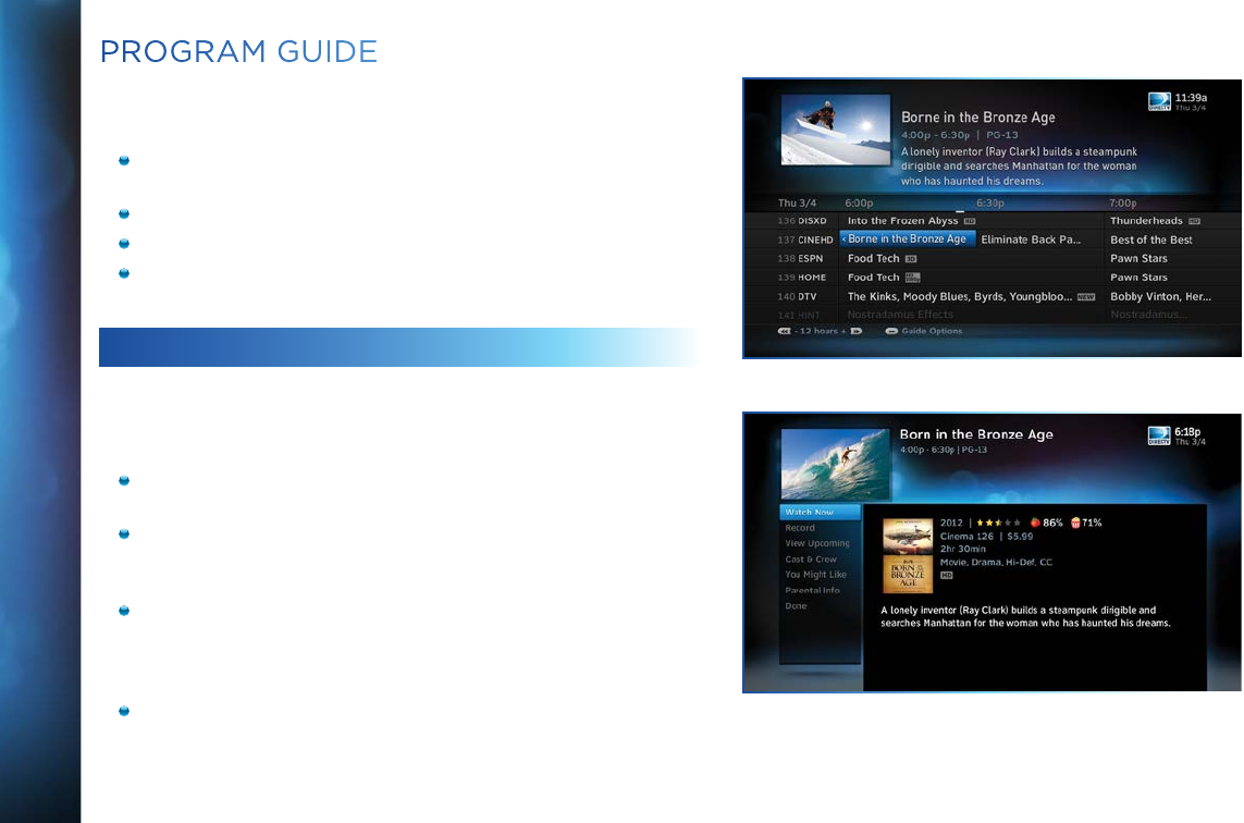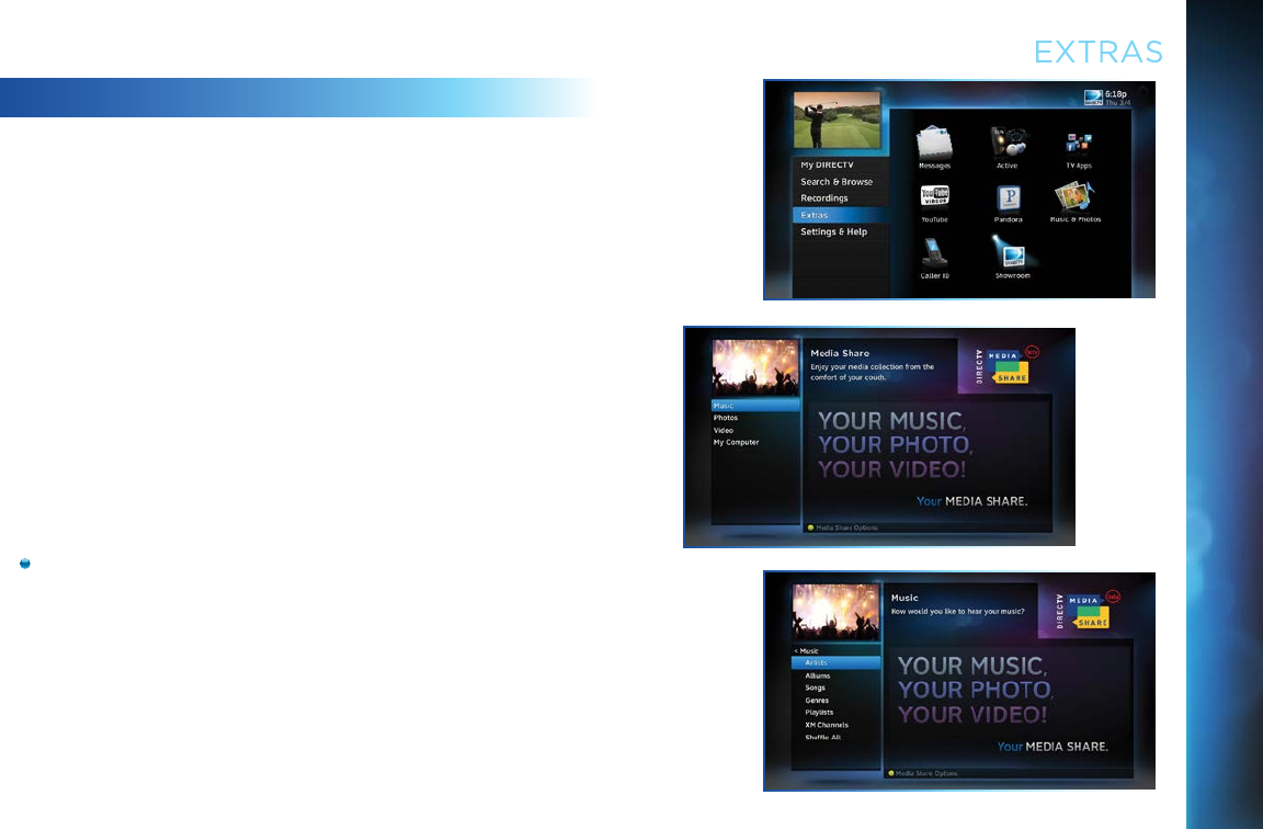 channels of live and On Demand TV programming, satellite music and a huge selection of box office hits from DIRECTV CINEMA®.