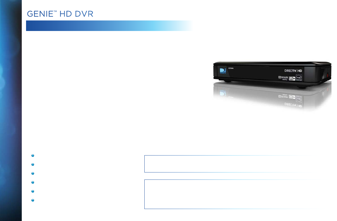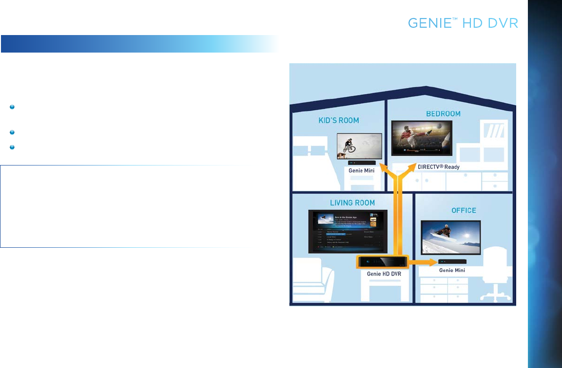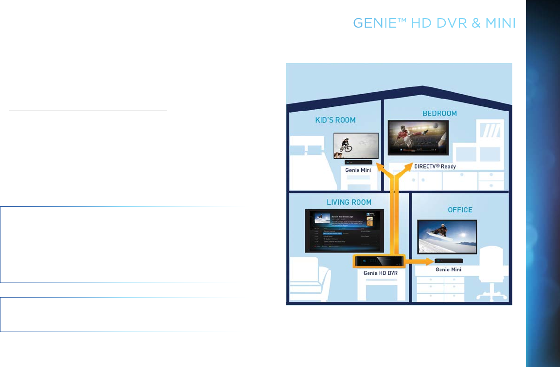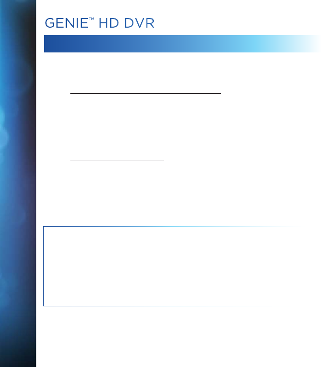This User Guide applies to the DIRECTV® HD DVR and the Genie™ HD DVR and Mini Clients. Because this User Guide was designed