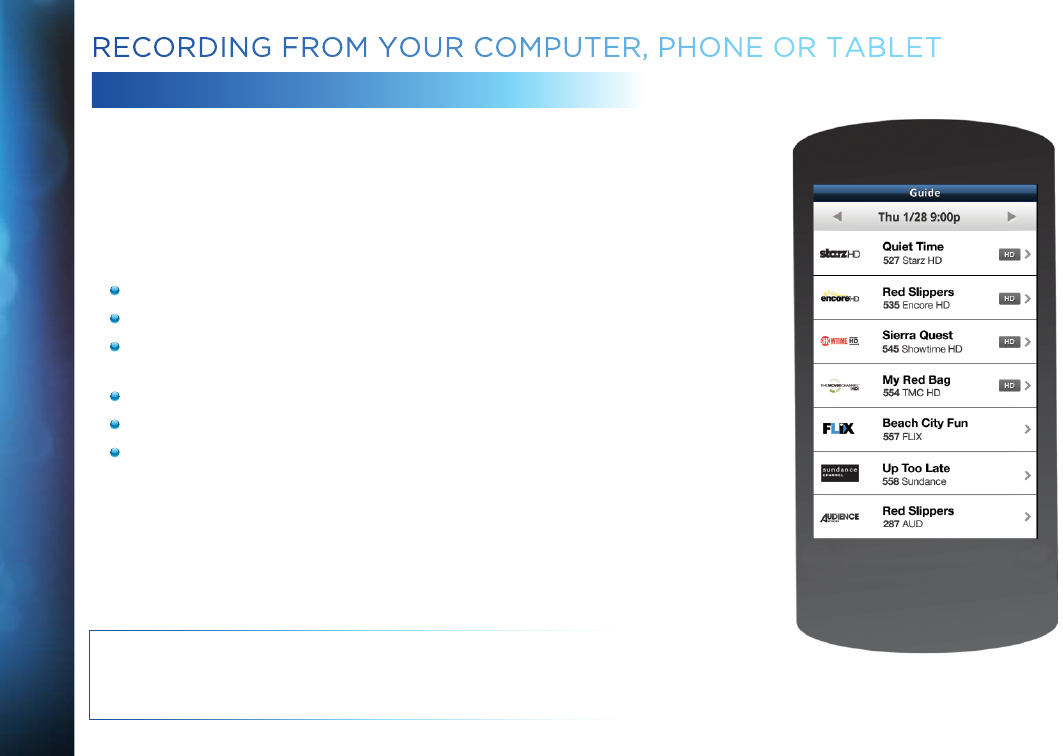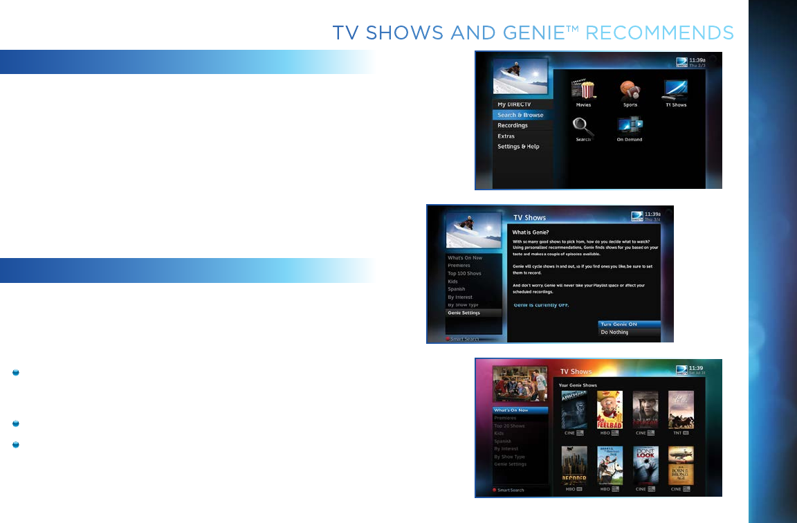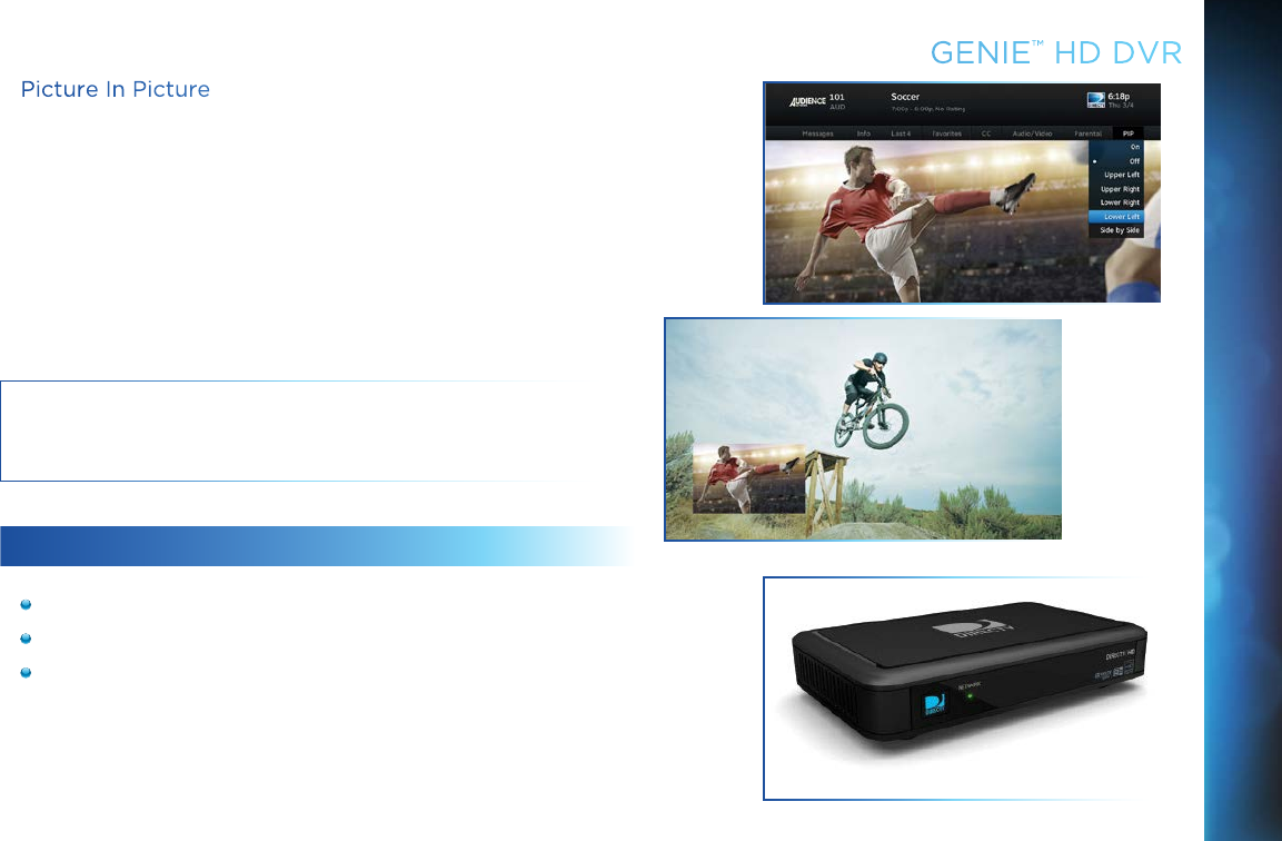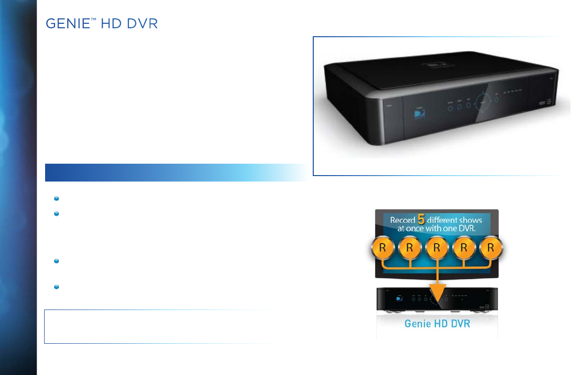 This User Guide applies to the DIRECTV® HD DVR and the Genie™ HD DVR and Mini Clients. Because this User Guide was designed