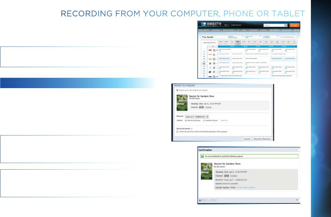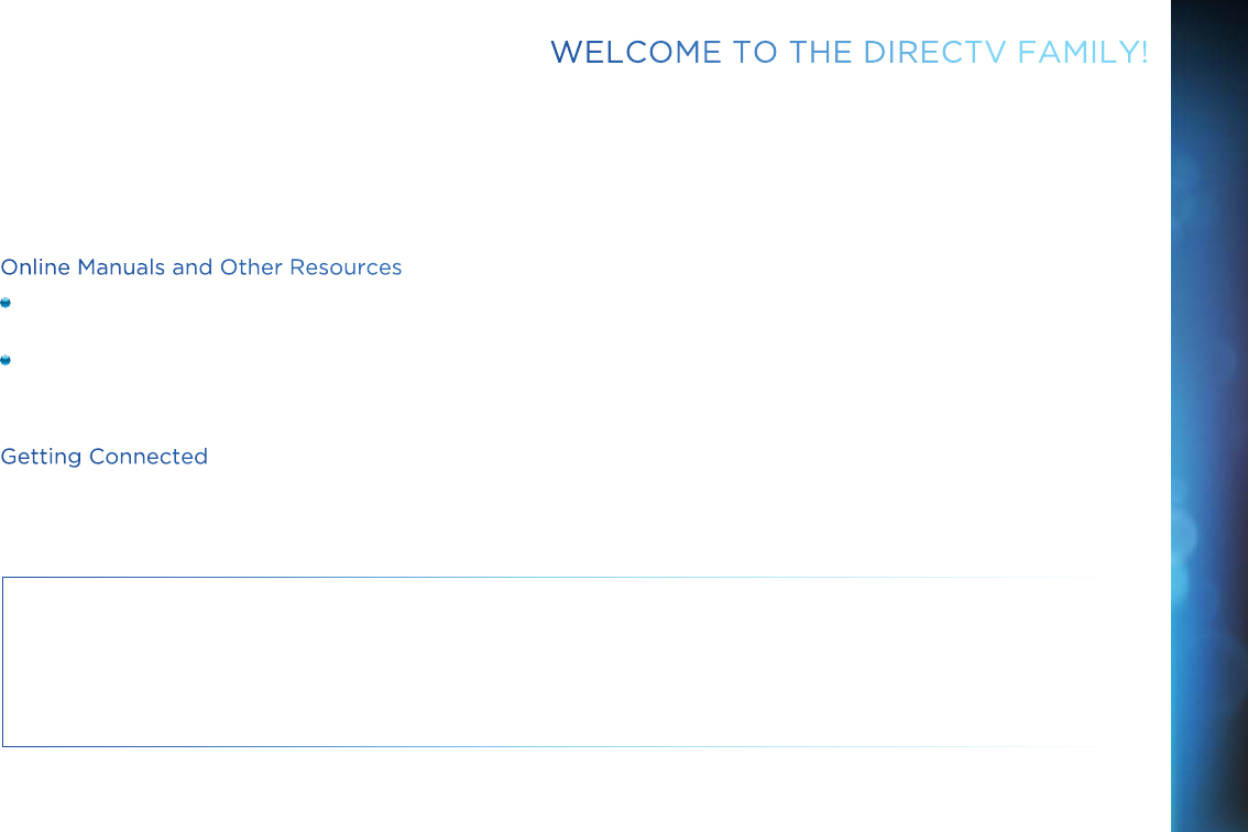 You can also visit www.directv.com to manage your account, and find information about DIRECTV service, programming