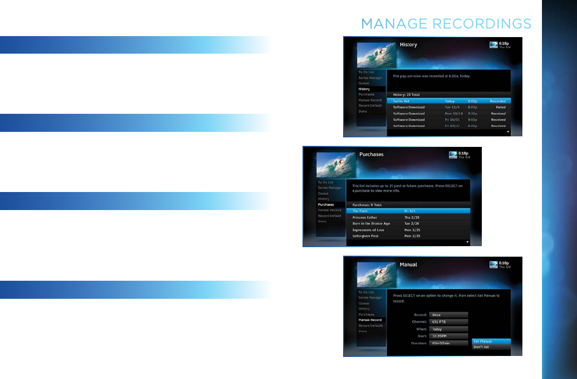To view the most up-to-date manuals for DIRECTV Receivers and other equipment, please visit www.directv.com/manuals or
