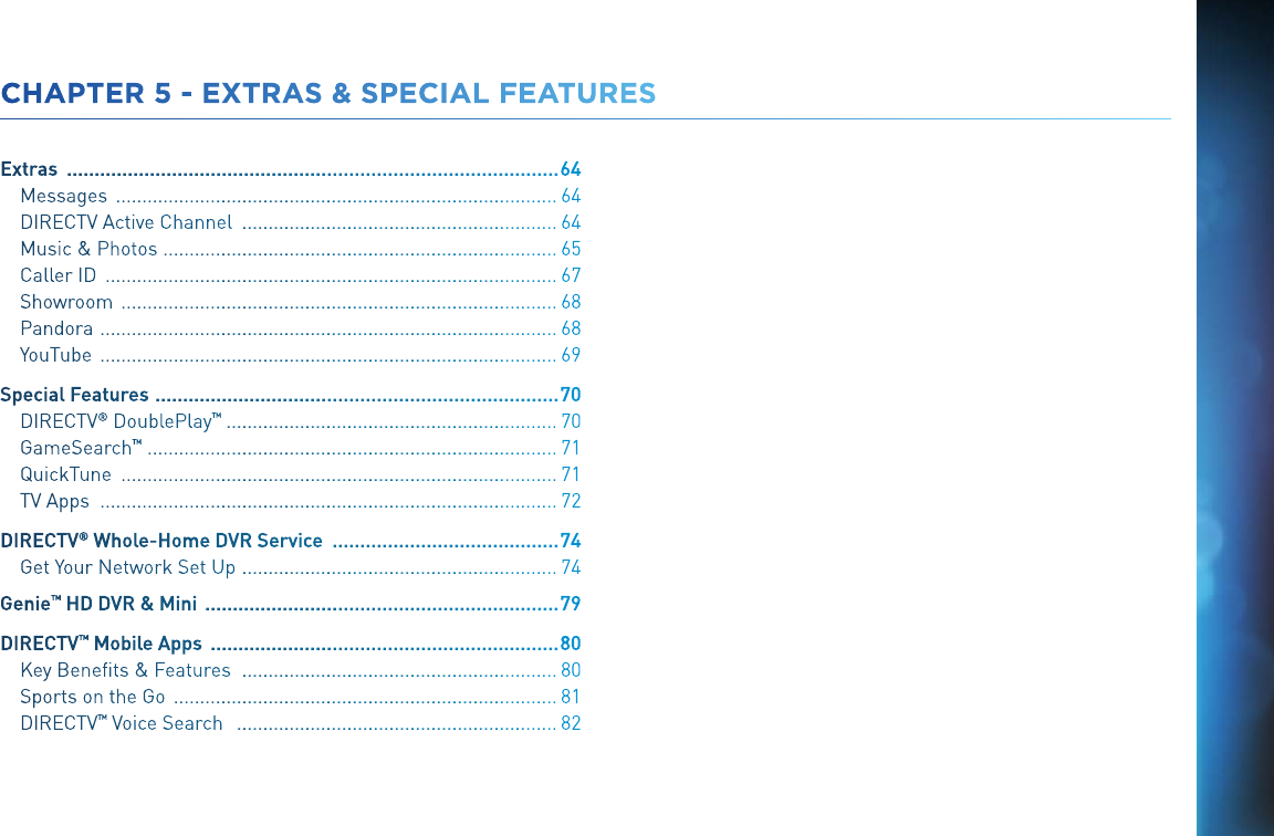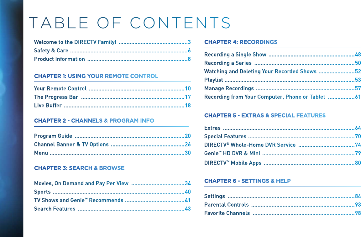 DIRECTV ™ Mobile Apps .......................................................... 80