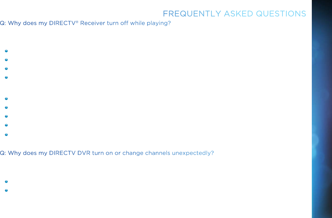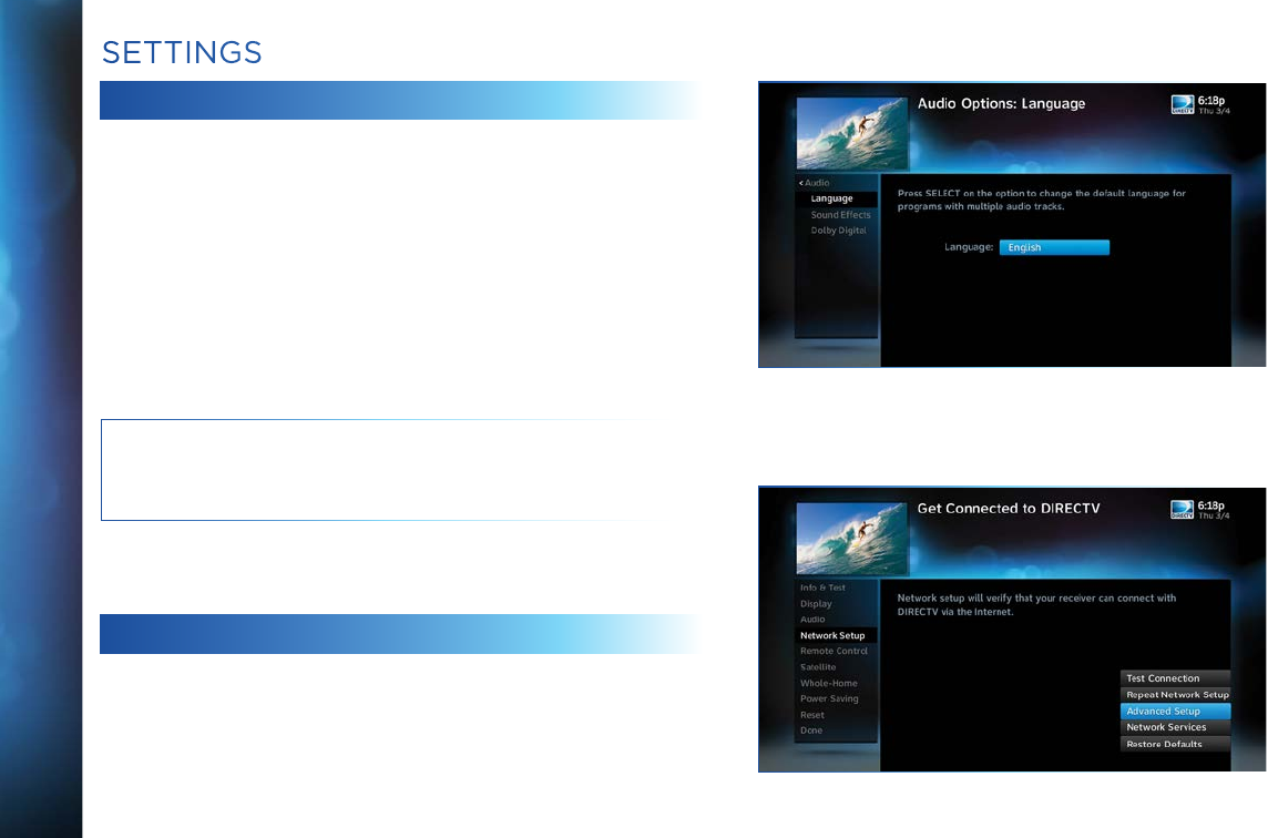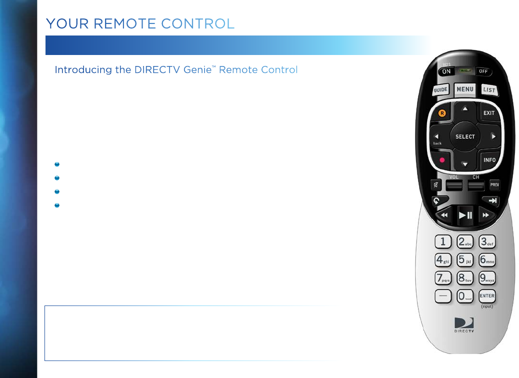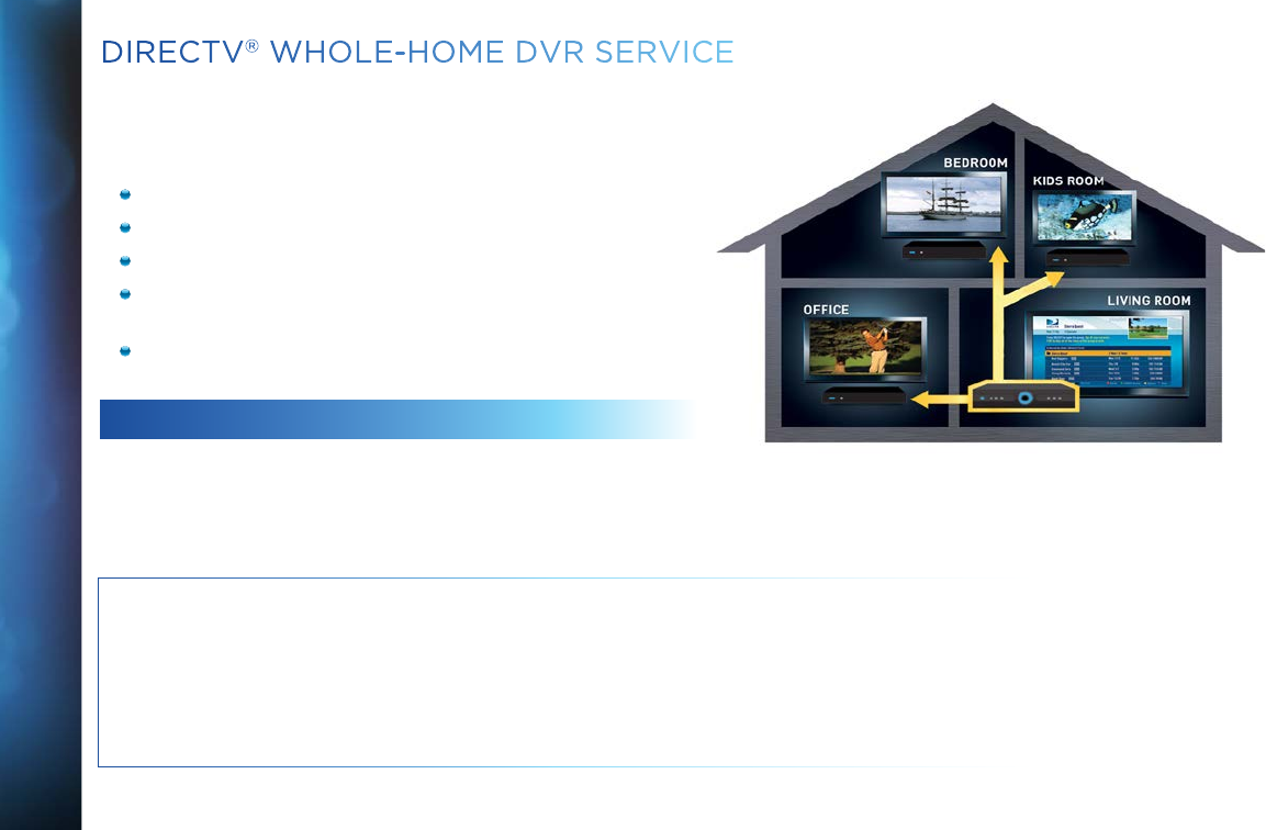 • DIRECTV hardware, programming and Advanced Receiver service available separately. For information and pricing, please