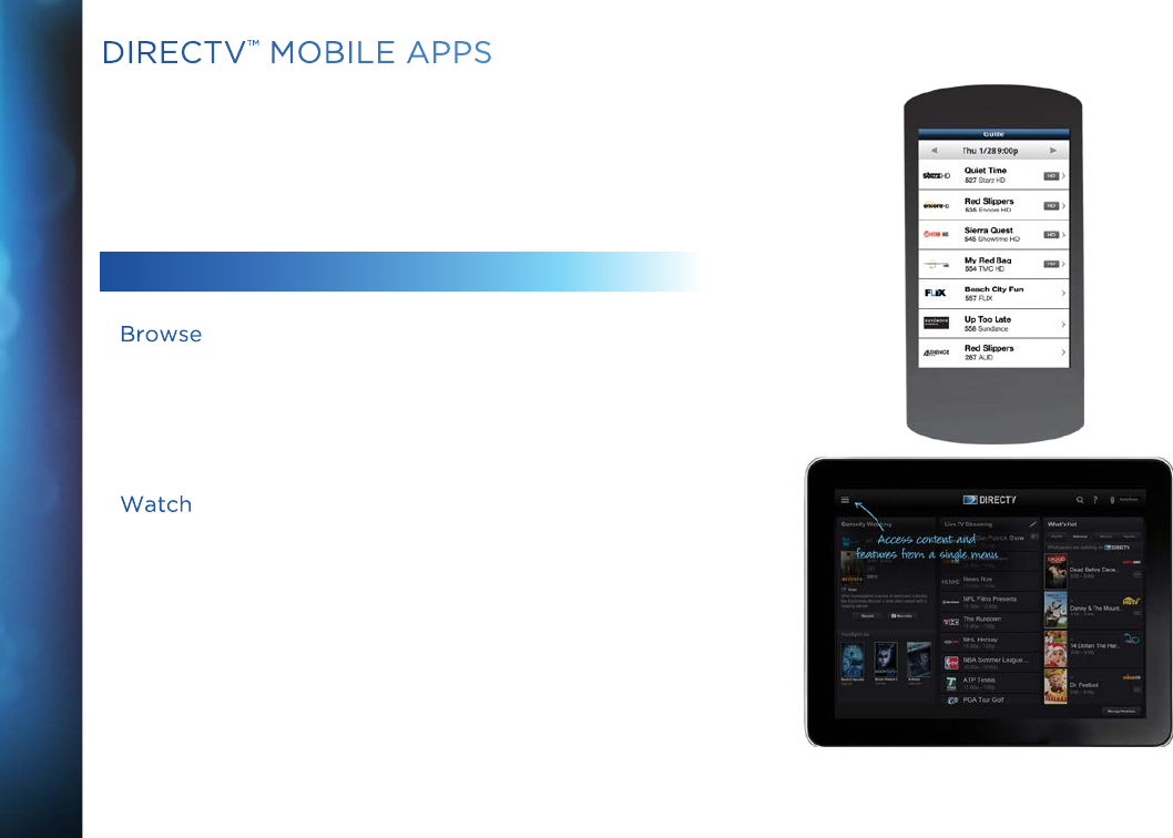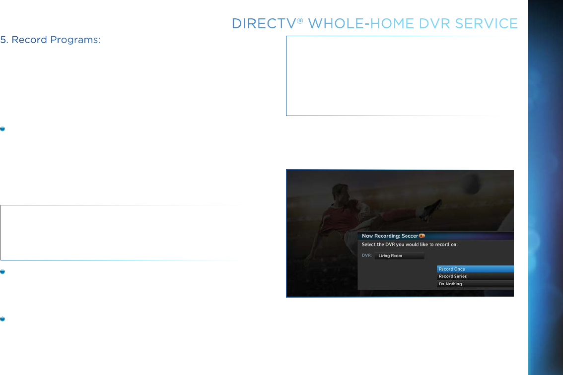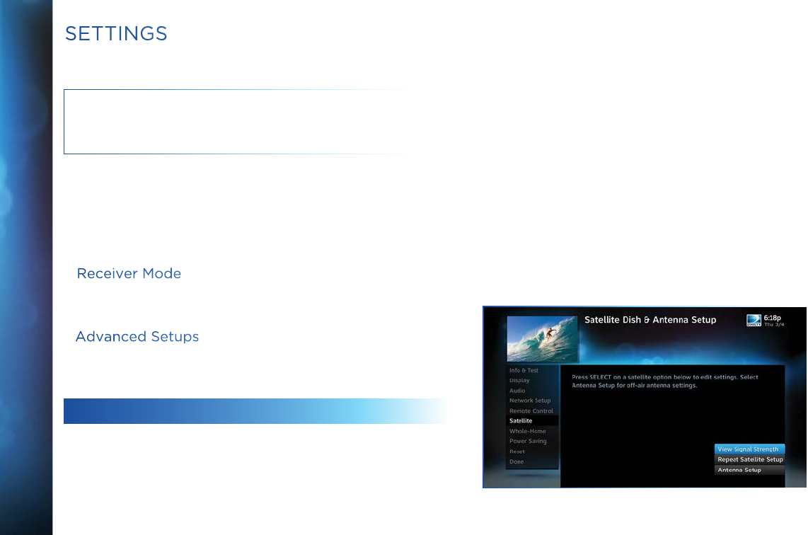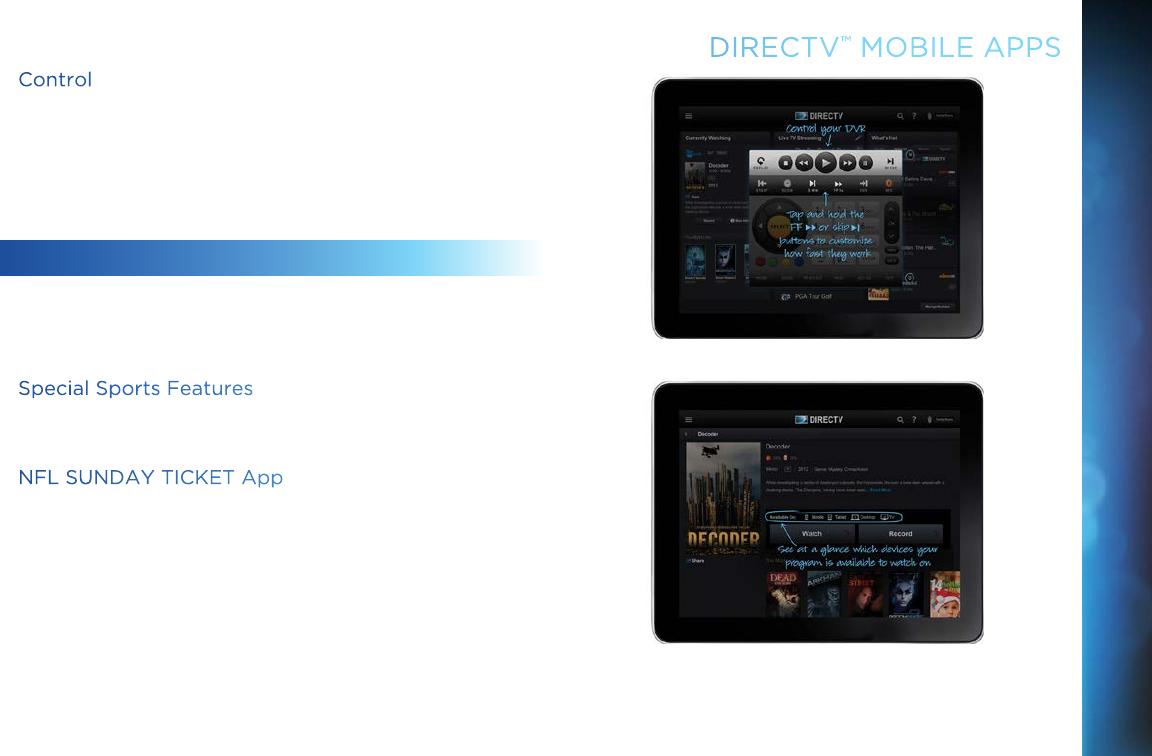 • DIRECTV hardware, programming and Advanced Receiver service available separately. For information and pricing, please