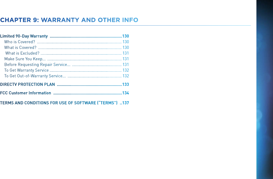 CHAPTER 9: WARRANTY AND OTHER INFO