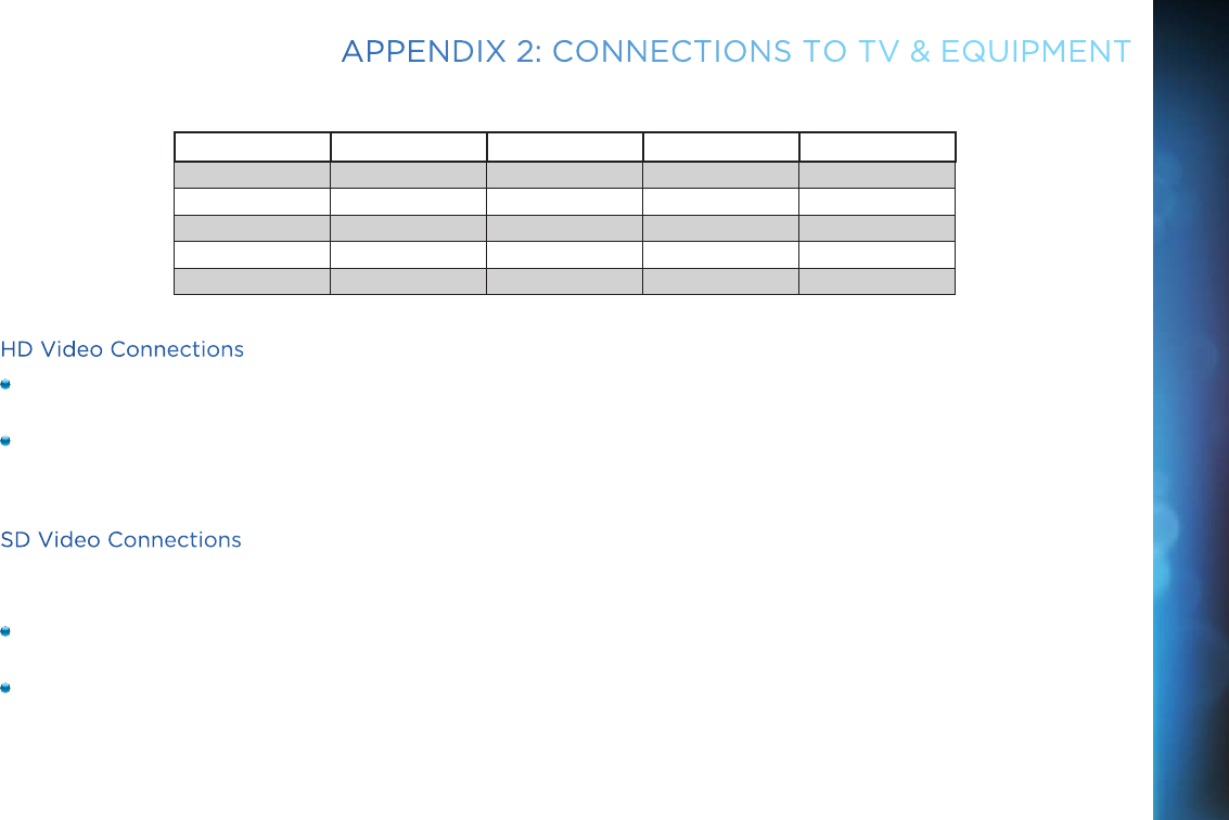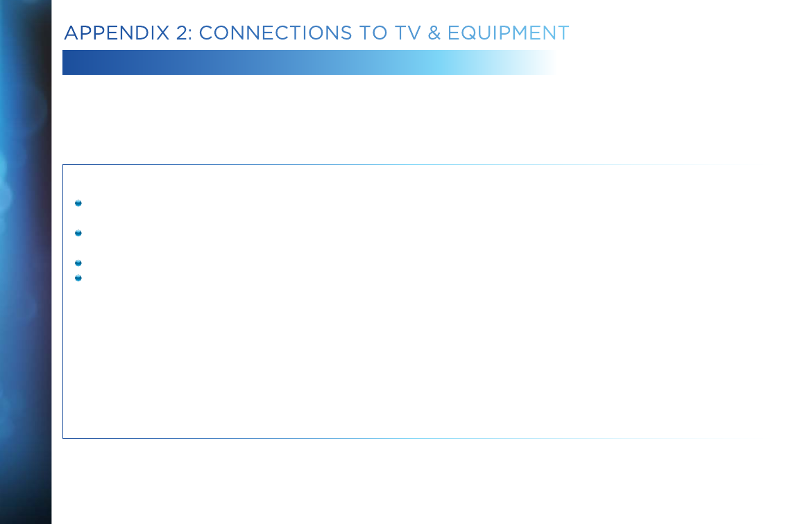 Appendix 2: Connections to TV & Equipment ...................... 149
