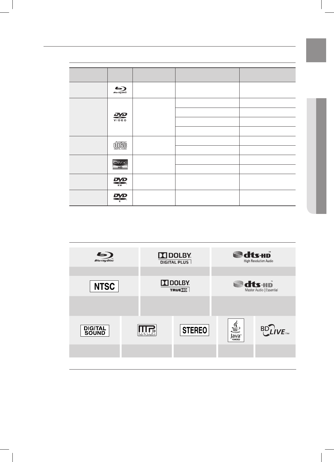 The HT-BD8200 allows you to play various discs, including BD-ROM, DVD-VIDEO, DVD-RW/-R(V mode), CD, MP3-