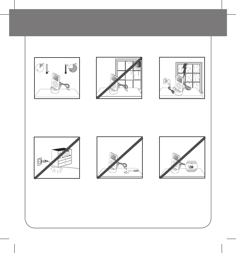 The following diagrams illustrate the precautions to be taken when using or moving your Wireless iPod Dock.