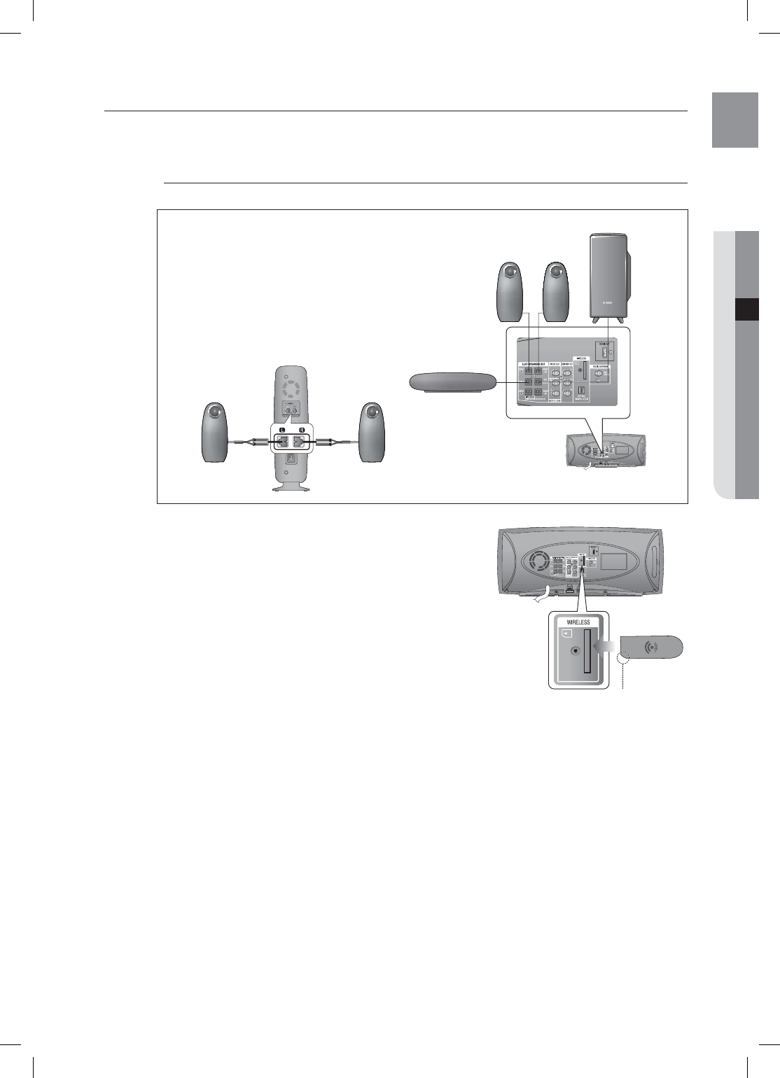 To connect the rear speakers by wireless, you have to purchase the wireless receiving module and TX card from