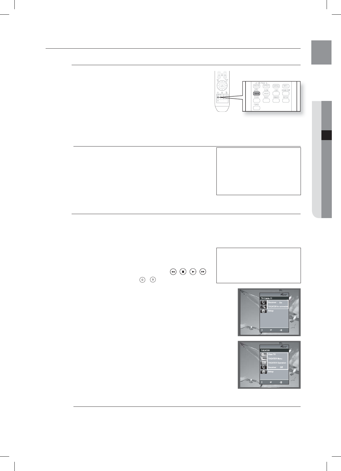 using the TV's remote control. This is only available with SAMSUNG TVs that support Anynet+(HDMI-CEC).