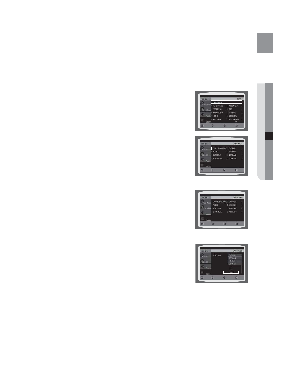 To operate this function, you can also press the SUBTITLE buttons on the remote control.