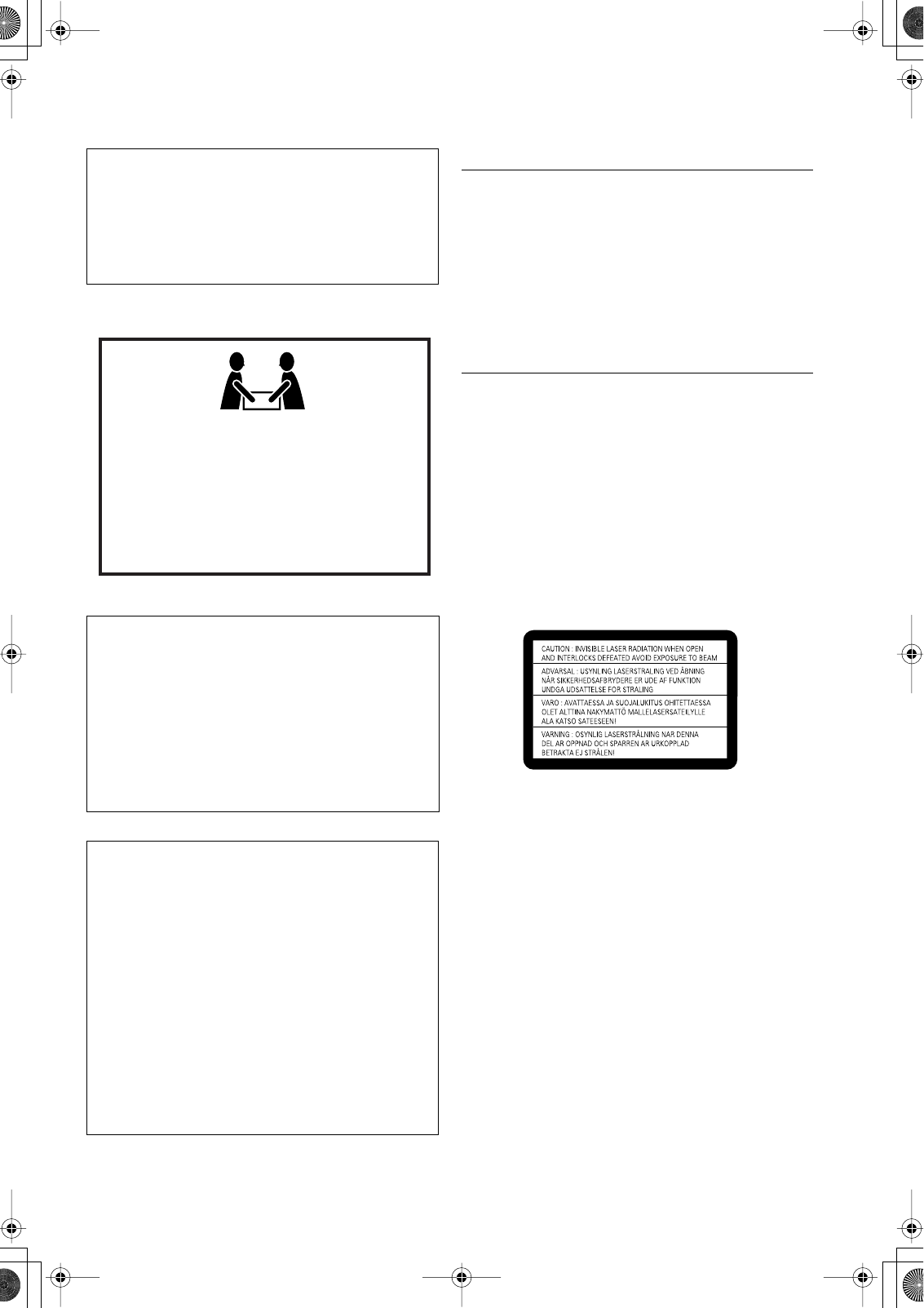 1 Do not remove screws, covers or cabinet.