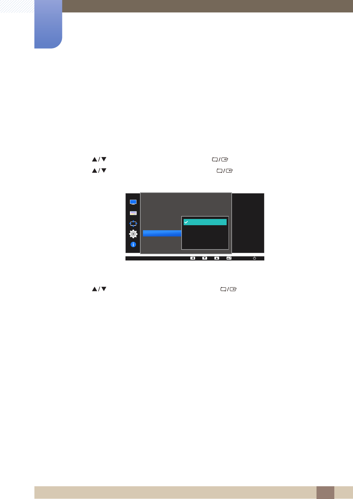 On screen display (OSD) allows you to customize on-screen settings to optimize the picture quality as