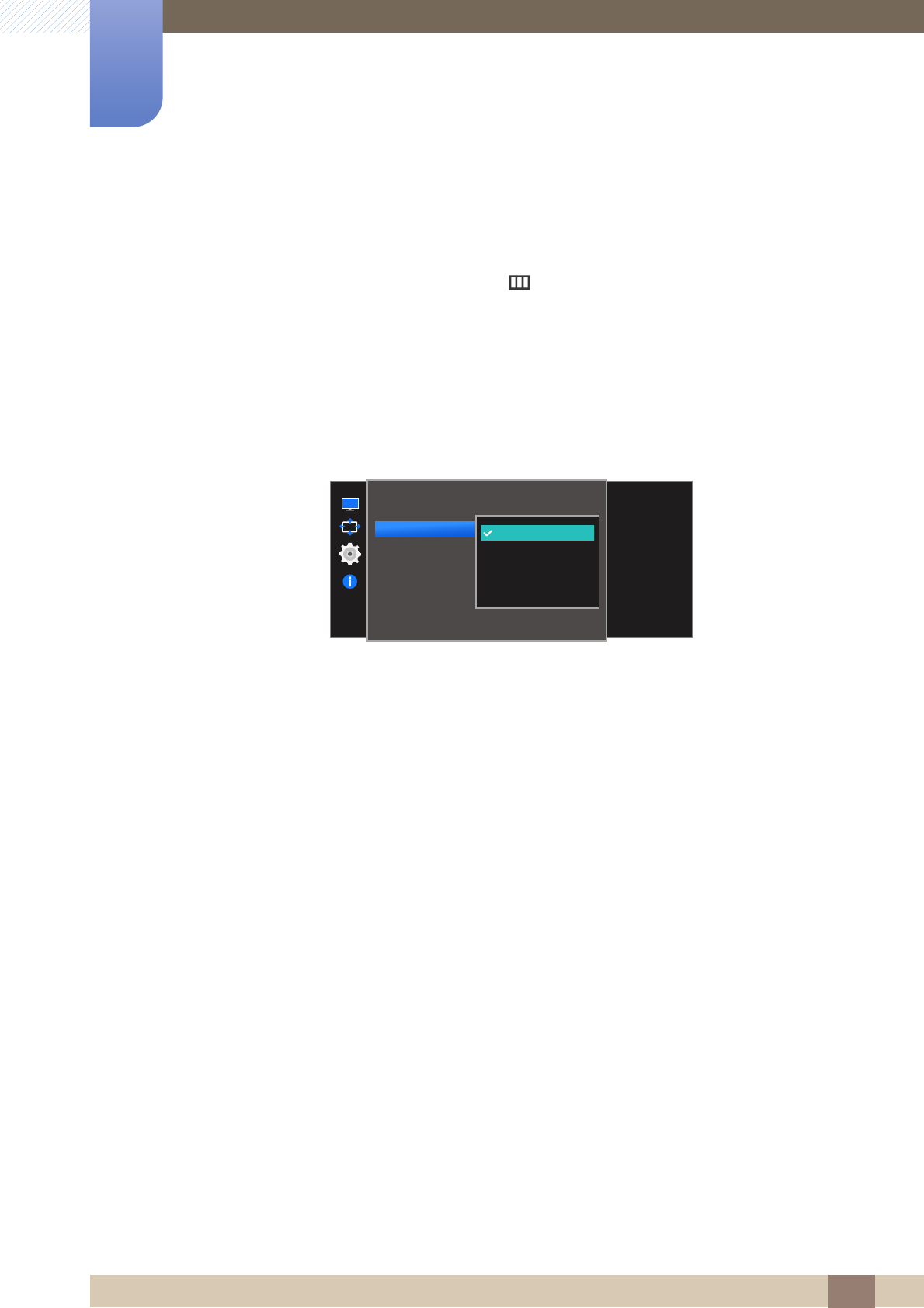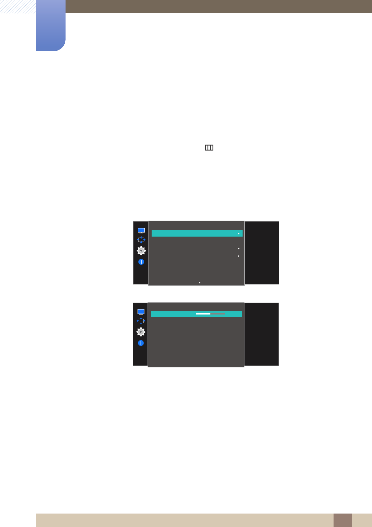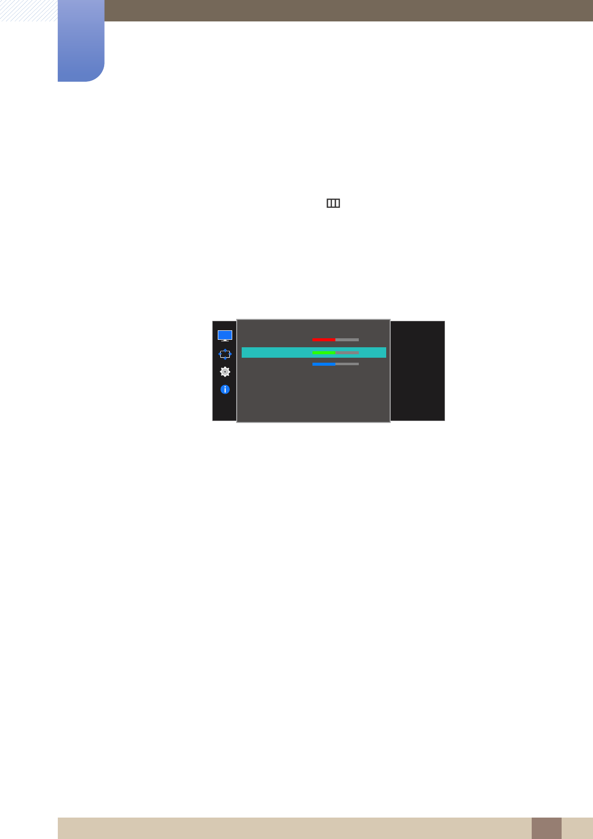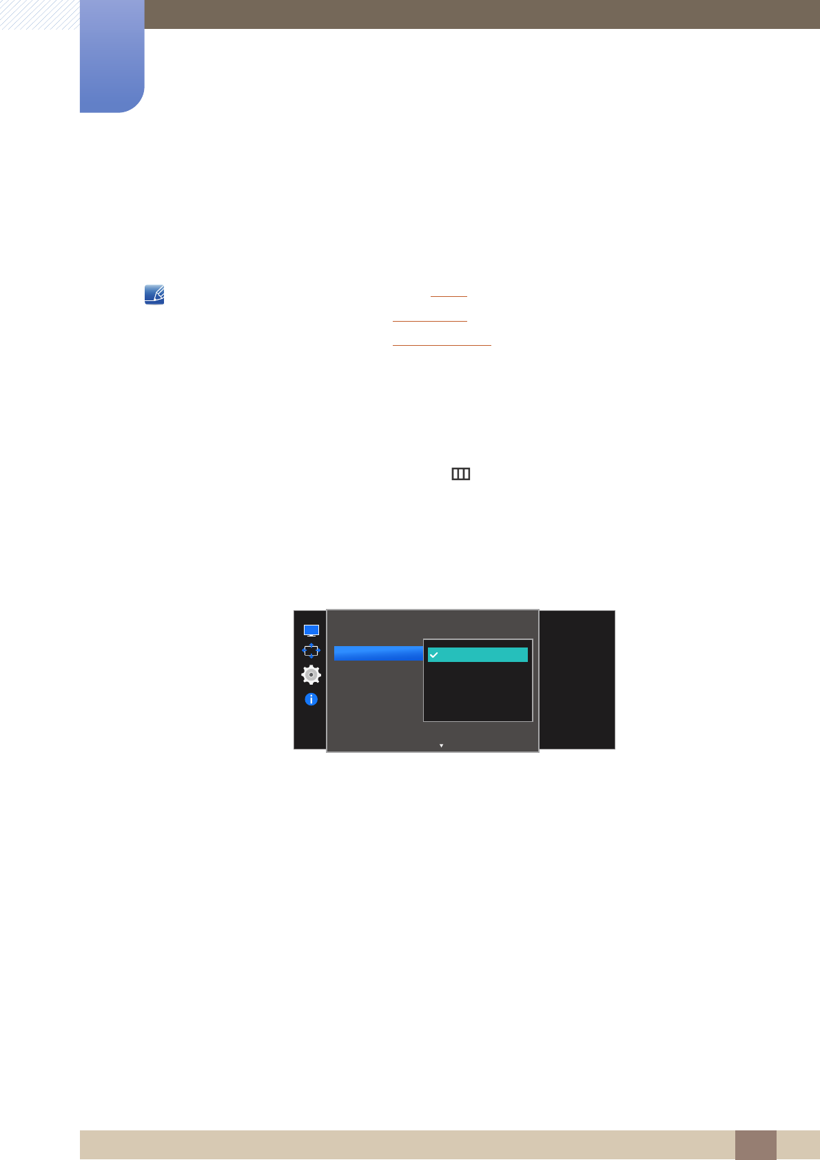 On screen display (OSD) allows you to customize on-screen settings to optimize the picture quality as