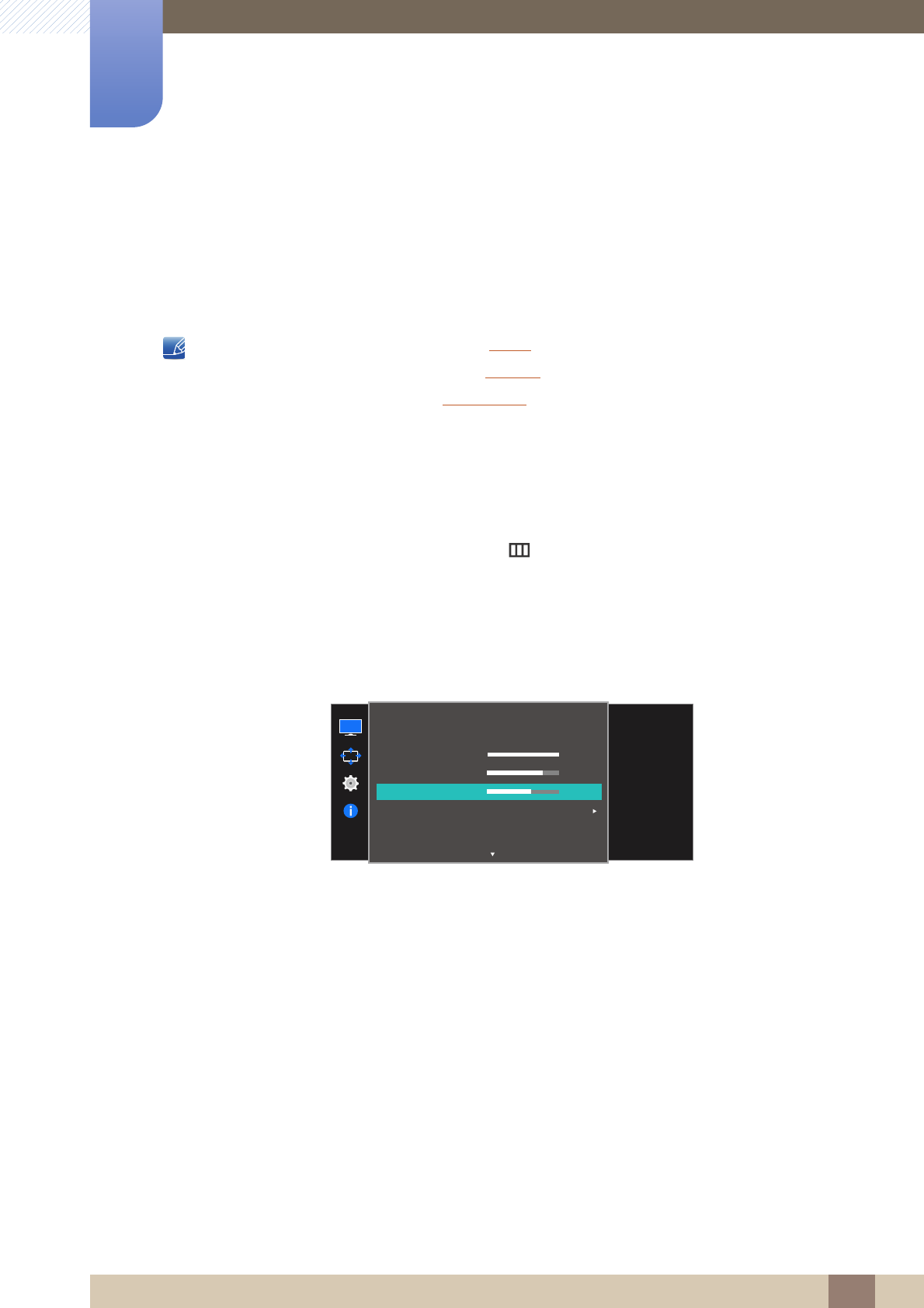 On screen display (OSD) allows you to customize on-screen settings to optimize the picture quality as