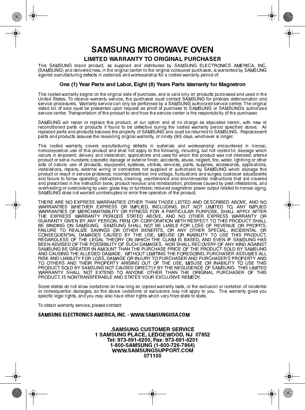 Samsung Electronics Co MC1015 Microwave Oven User Manual 2