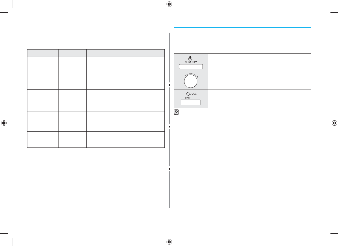 The following table presents the 9 Slim Fry auto programmes for frying. It contains its