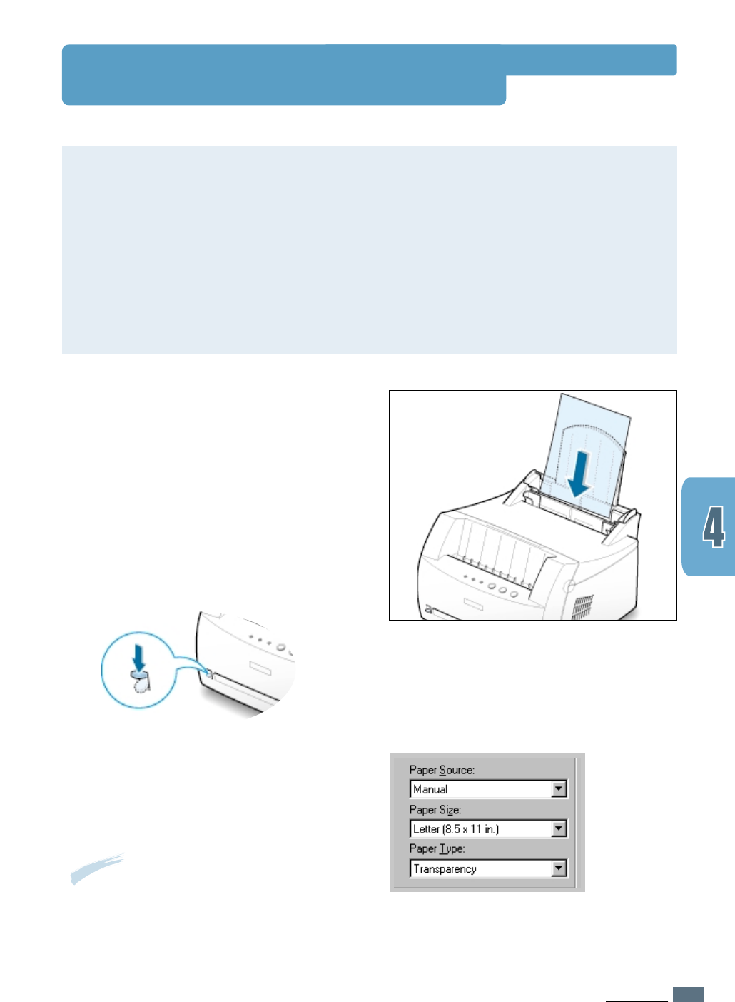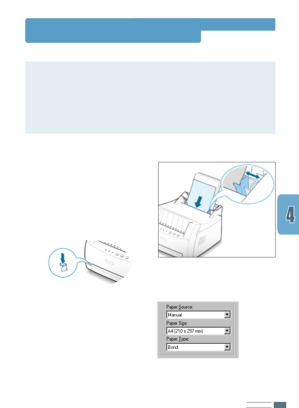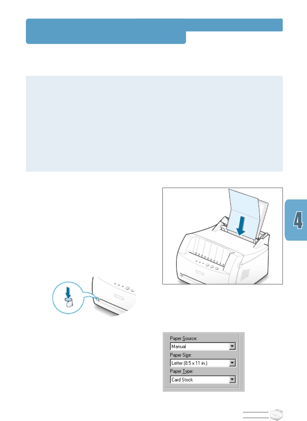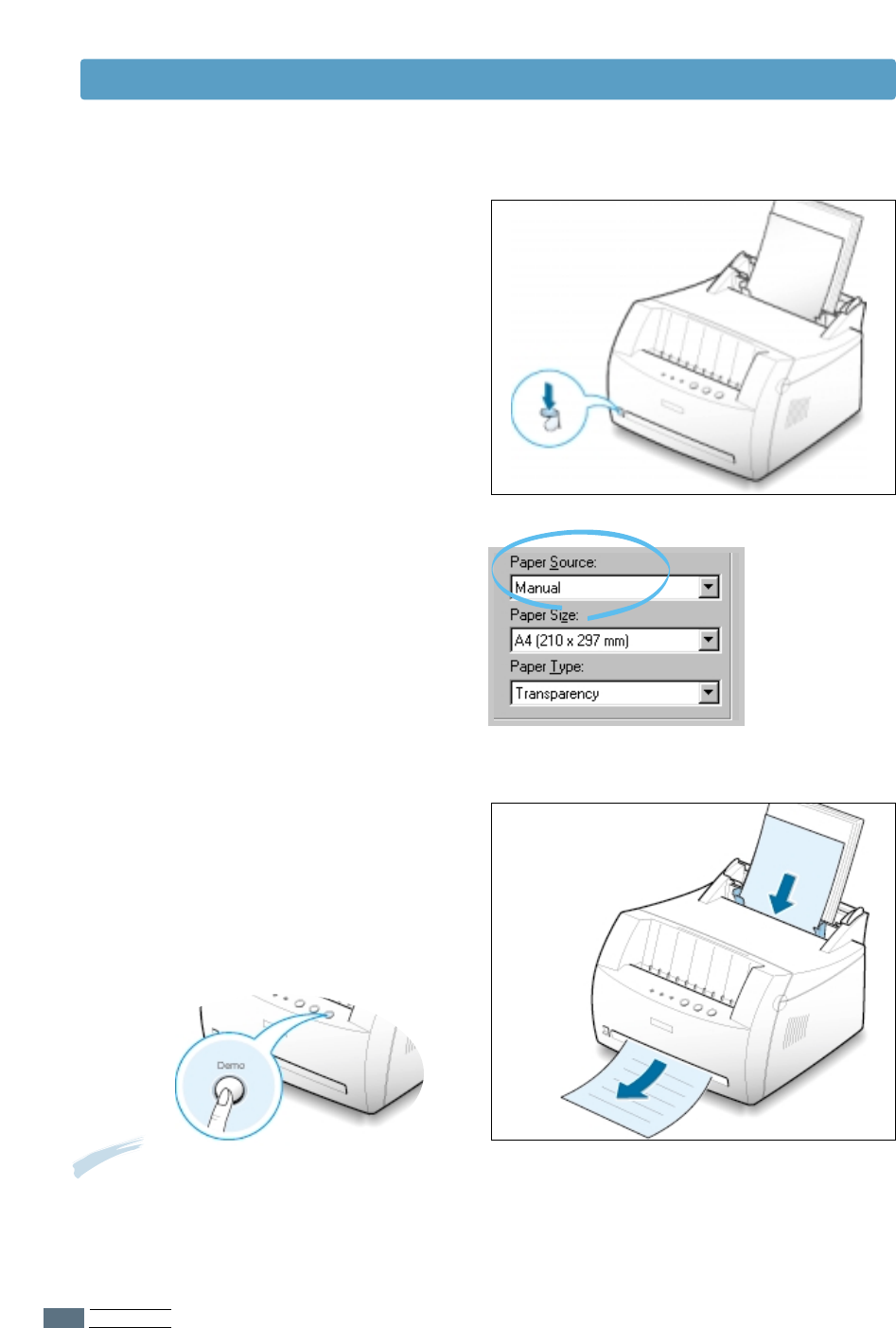 In the Manual Feed mode, the printer is waiting the Demo button to be pressed.