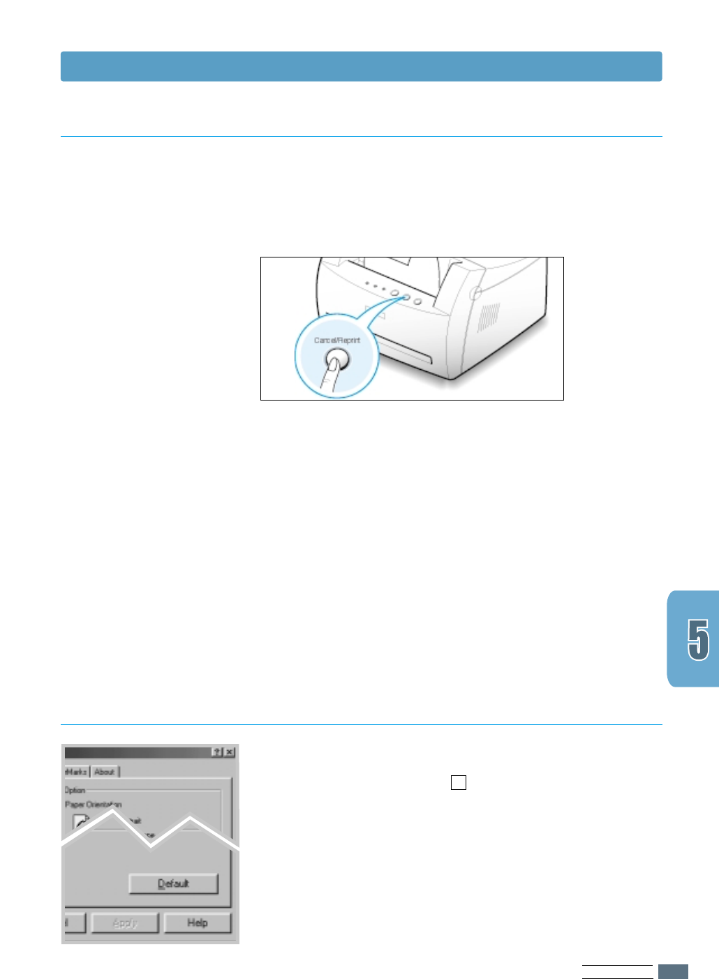 Pressing the Cancel/Reprint button cancels the current job. One or two pages