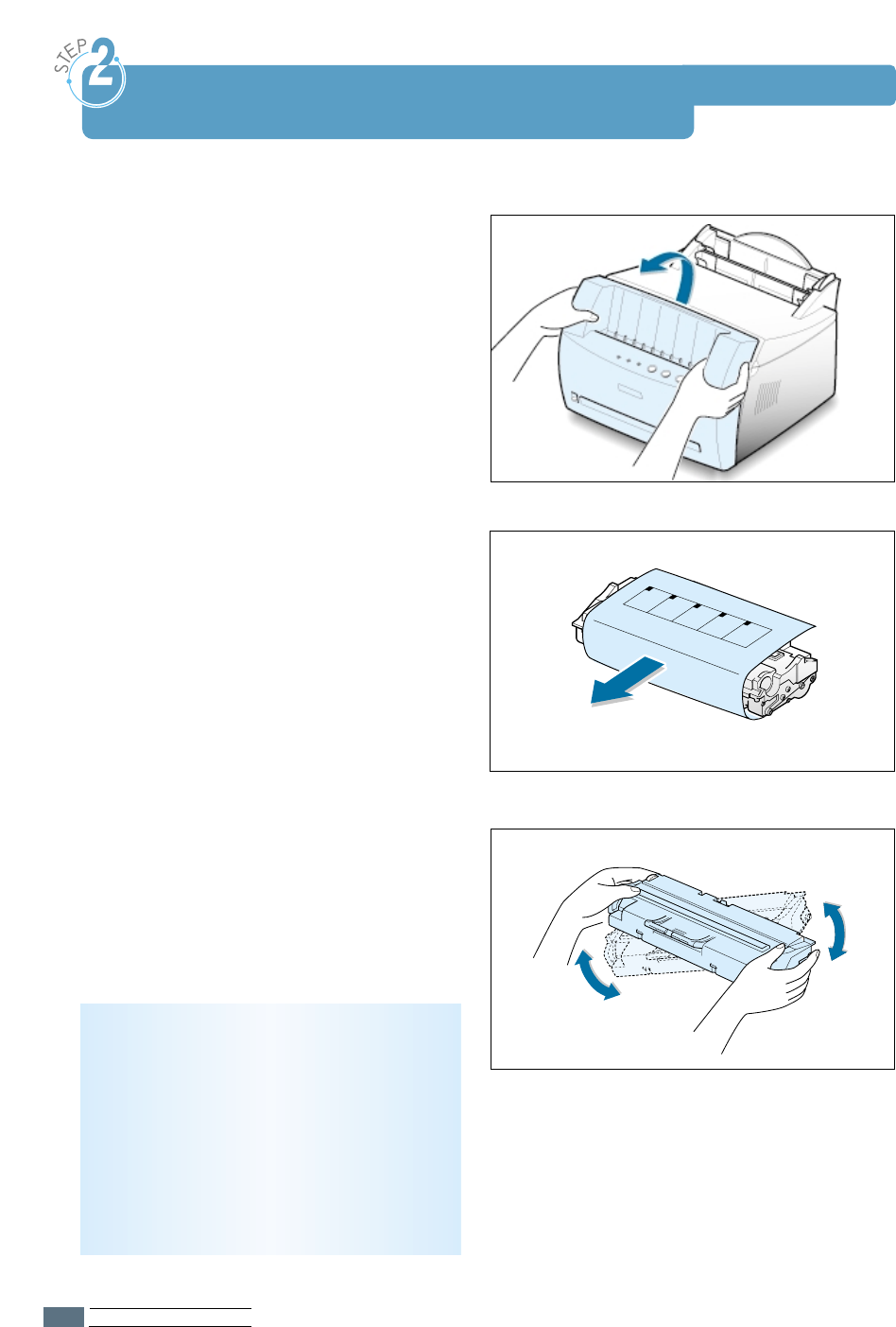 STEP 2:Install the Toner Cartridge ––––––––––––––––––––– 2.2