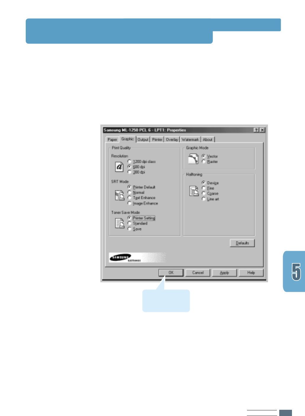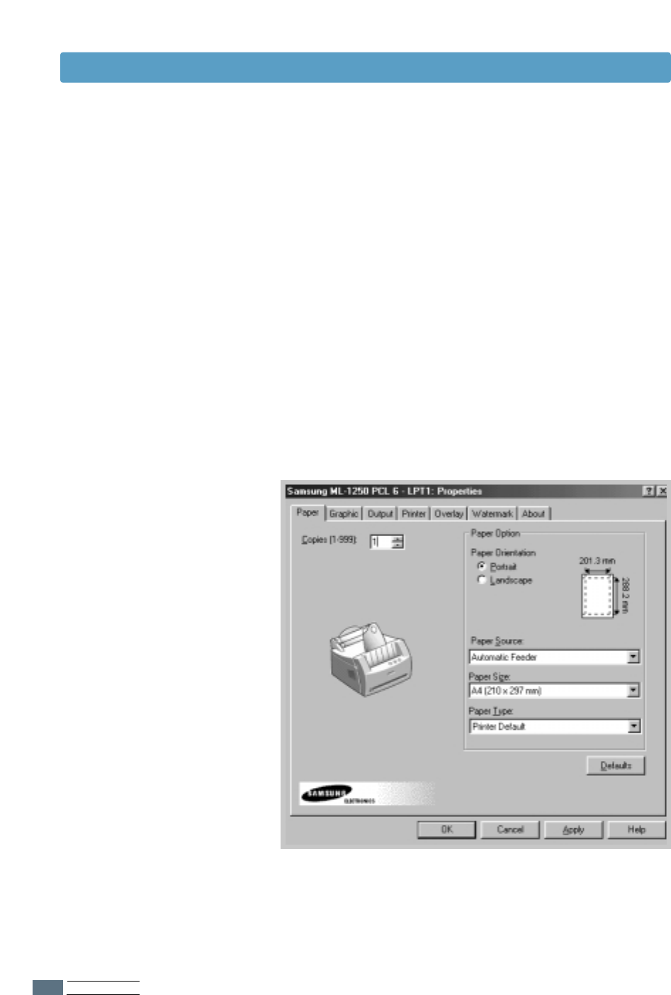 Note: You need to install the Samsung ML-1250 printer driver