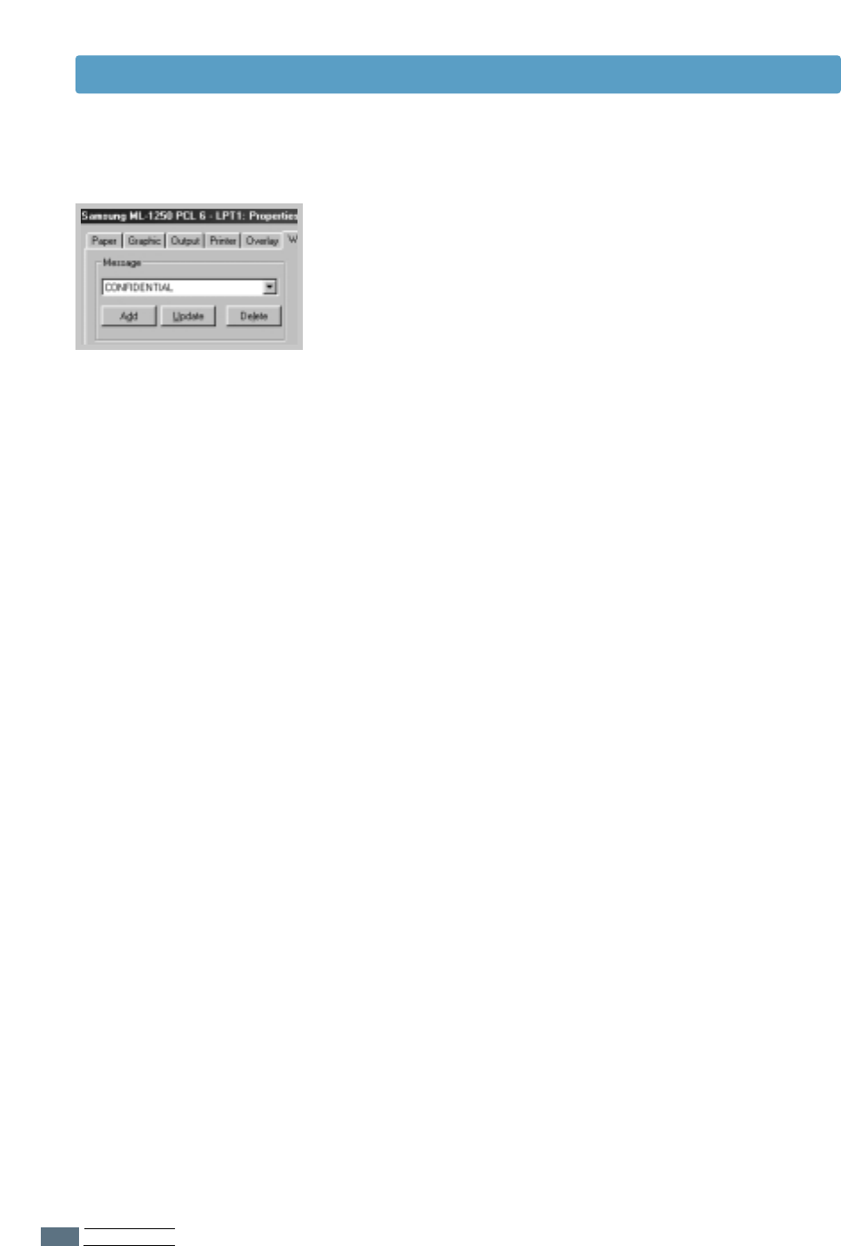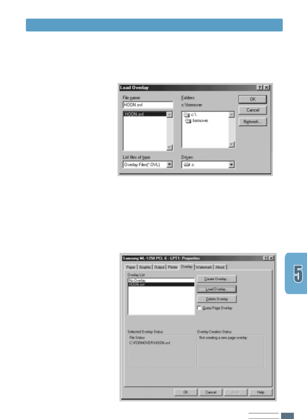 In the printer properties dialog box, click the Overlays tab.