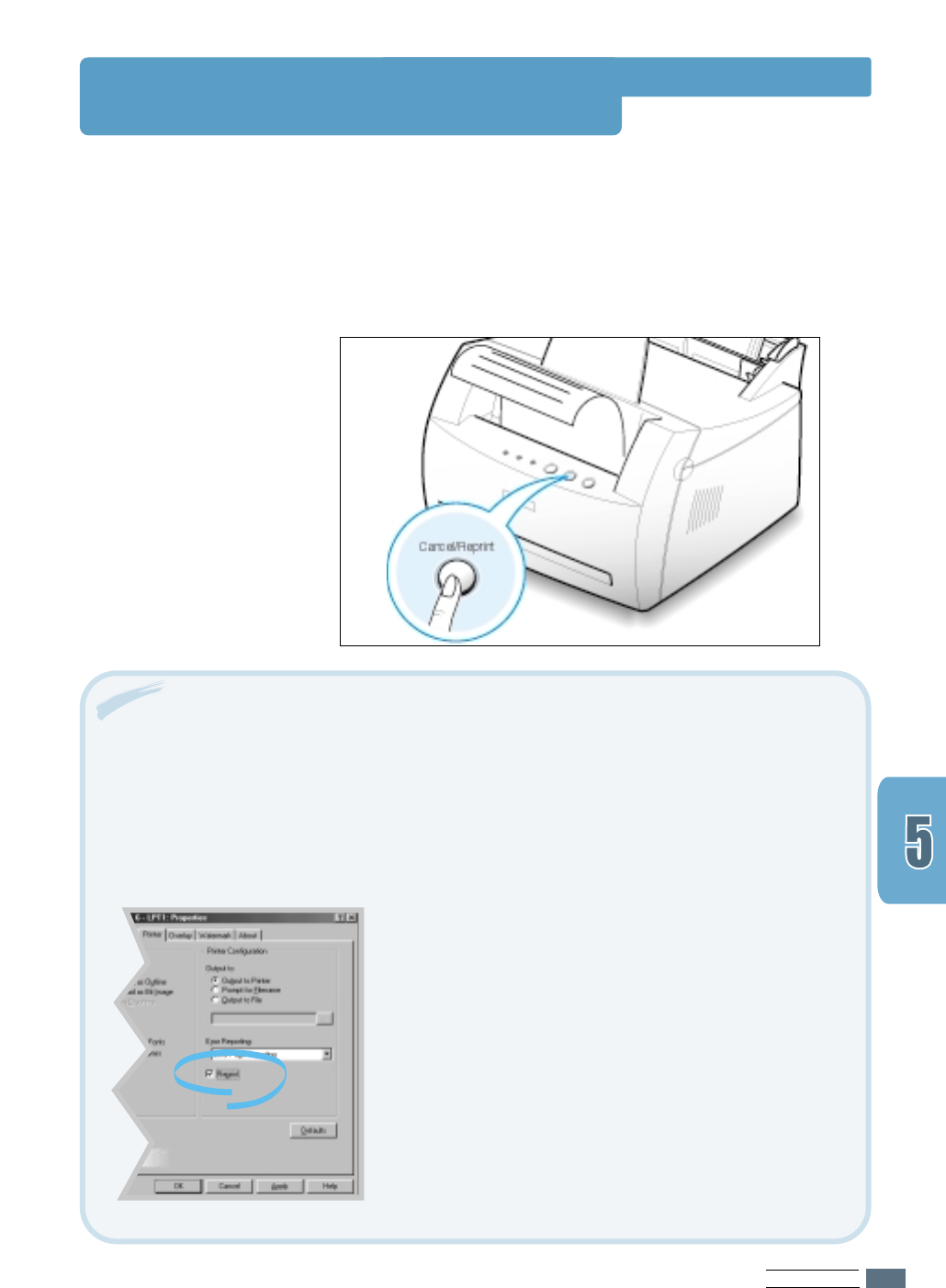Reprinting feature off in the printer’s properties dialog box. When you turn the feature