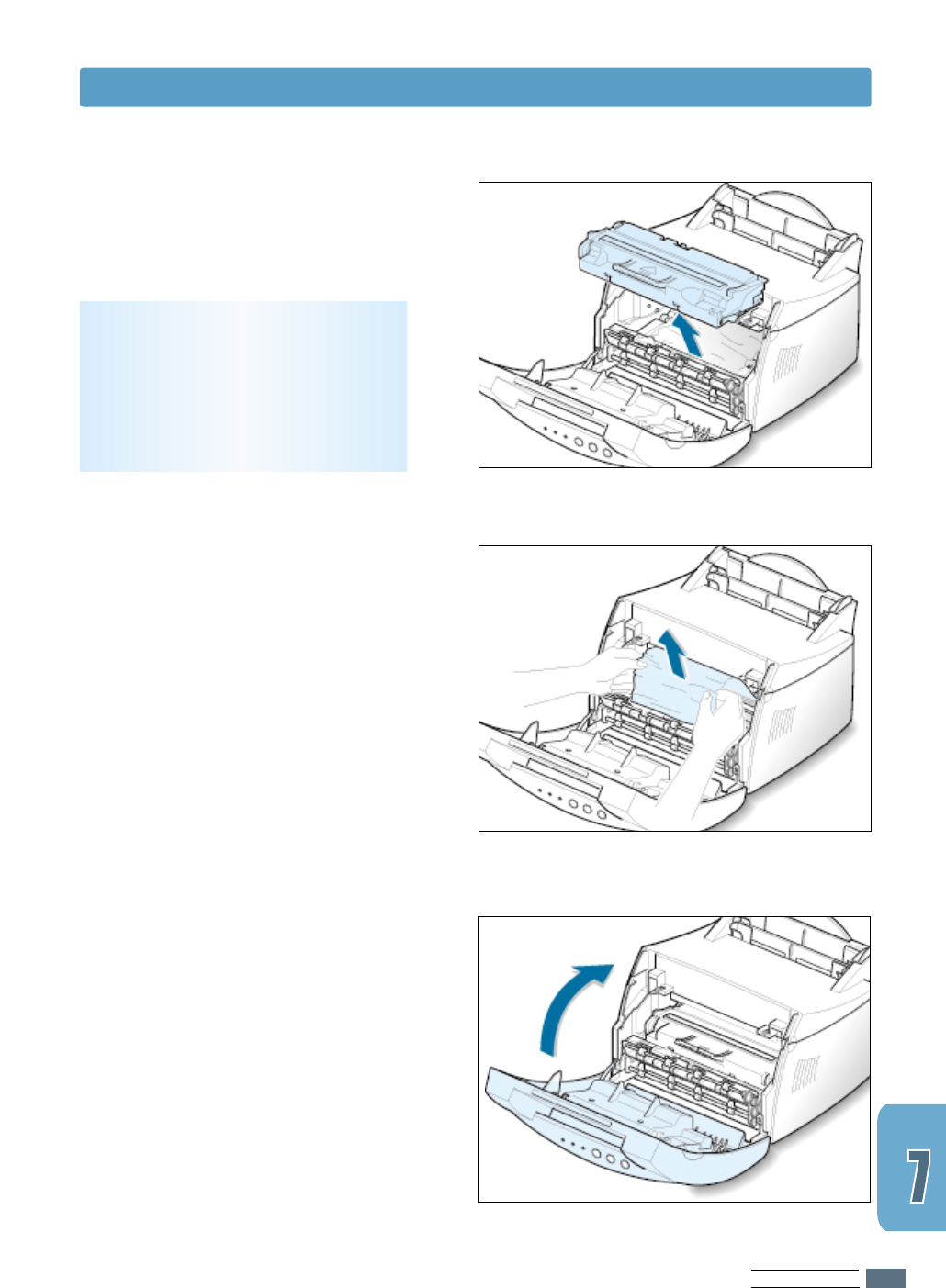 replace it, clean it or clear a paper jam. Replace the cartridge