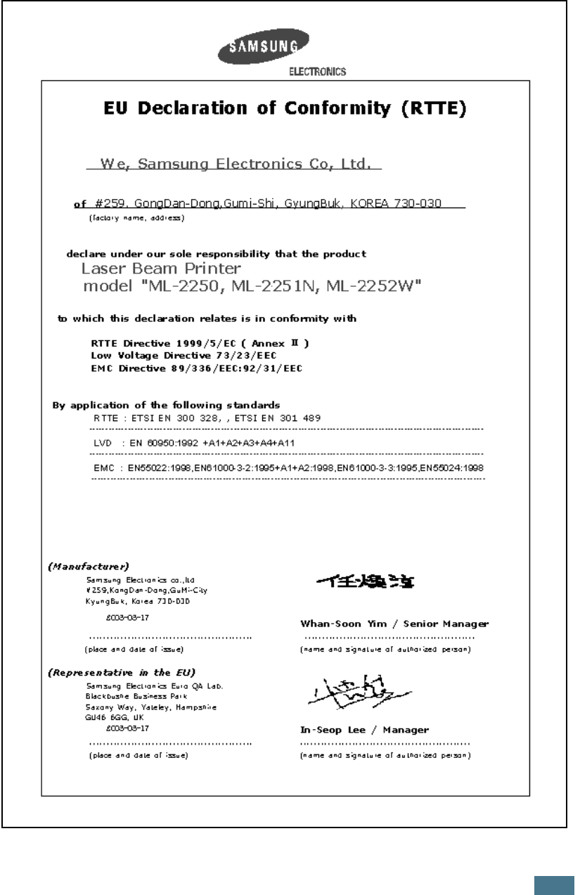 • ML-2250, ML-2251N, ML-2252W and Samsung logo are trademarks of Samsung